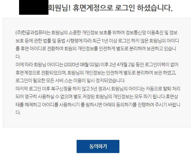 한글과컴퓨터(한컴)의 휴면계정정책에 대한 궁금증 본문