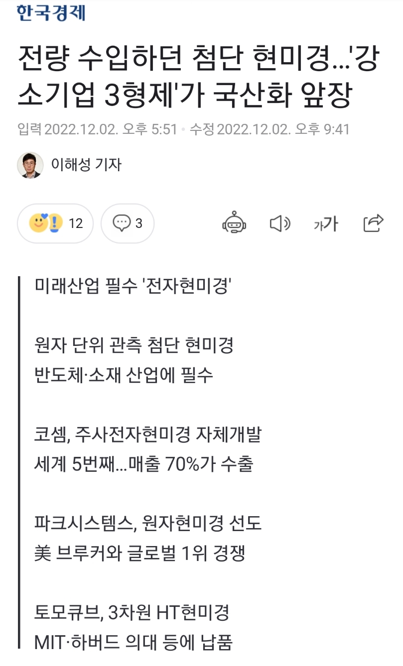전량 수입하던 첨단 현미경…'강소기업 3형제'가 국산화 앞장