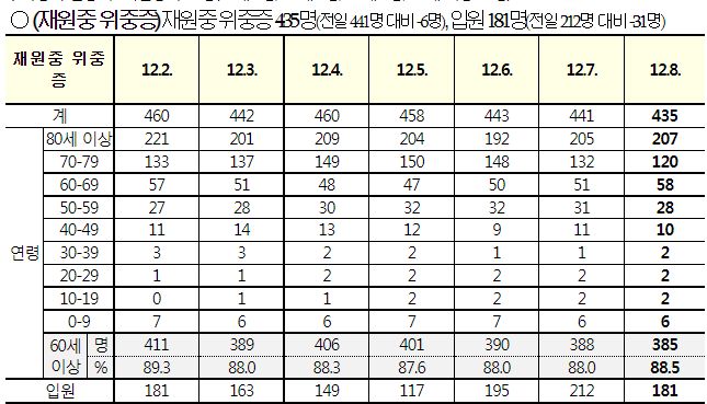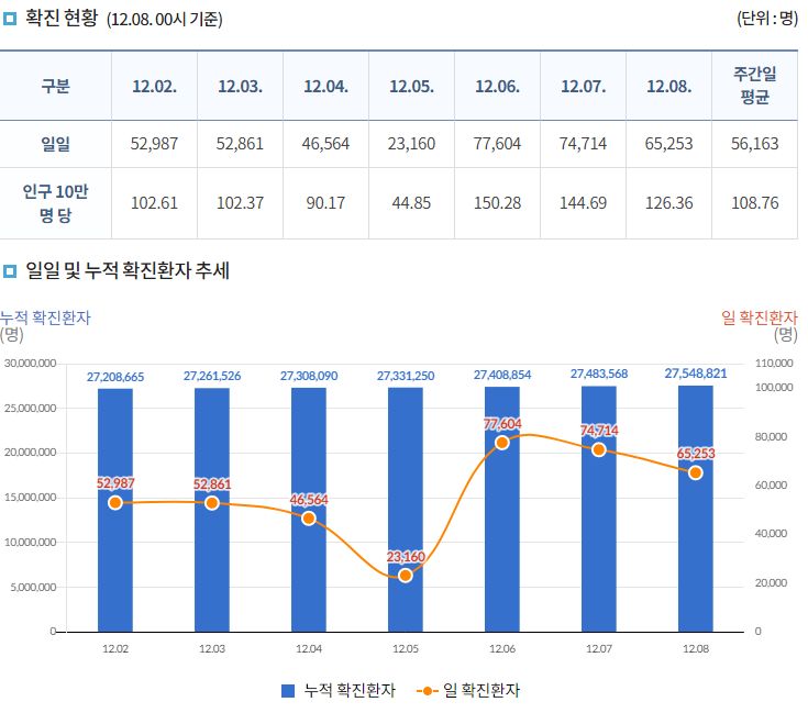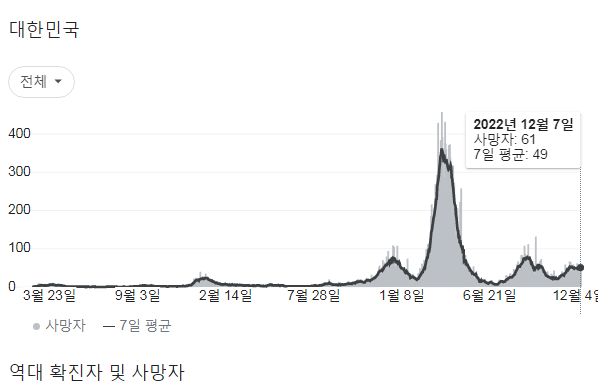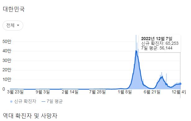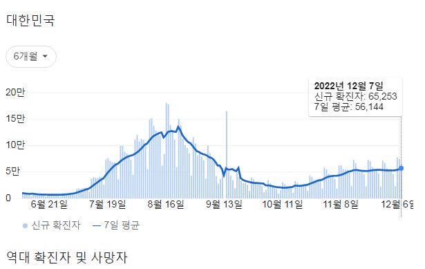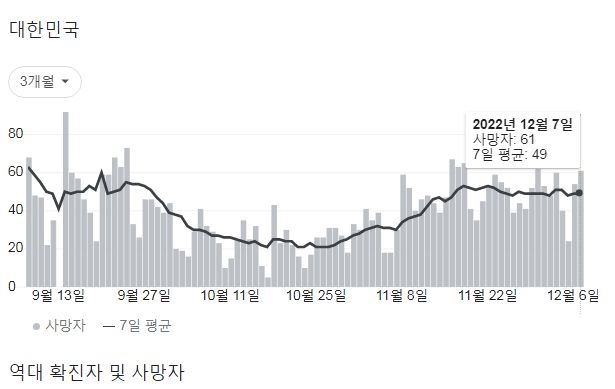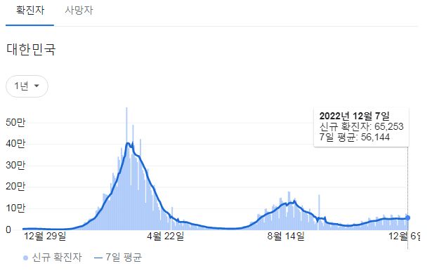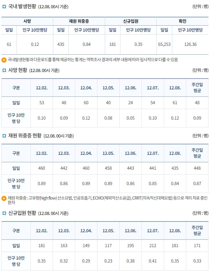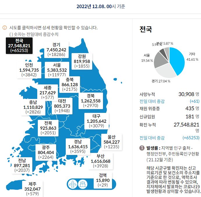 코로나19집계(2022.12.8. 0시기준): 확진 +6.5만, 사망 +61명, 중환자병상가동률 33% 본문