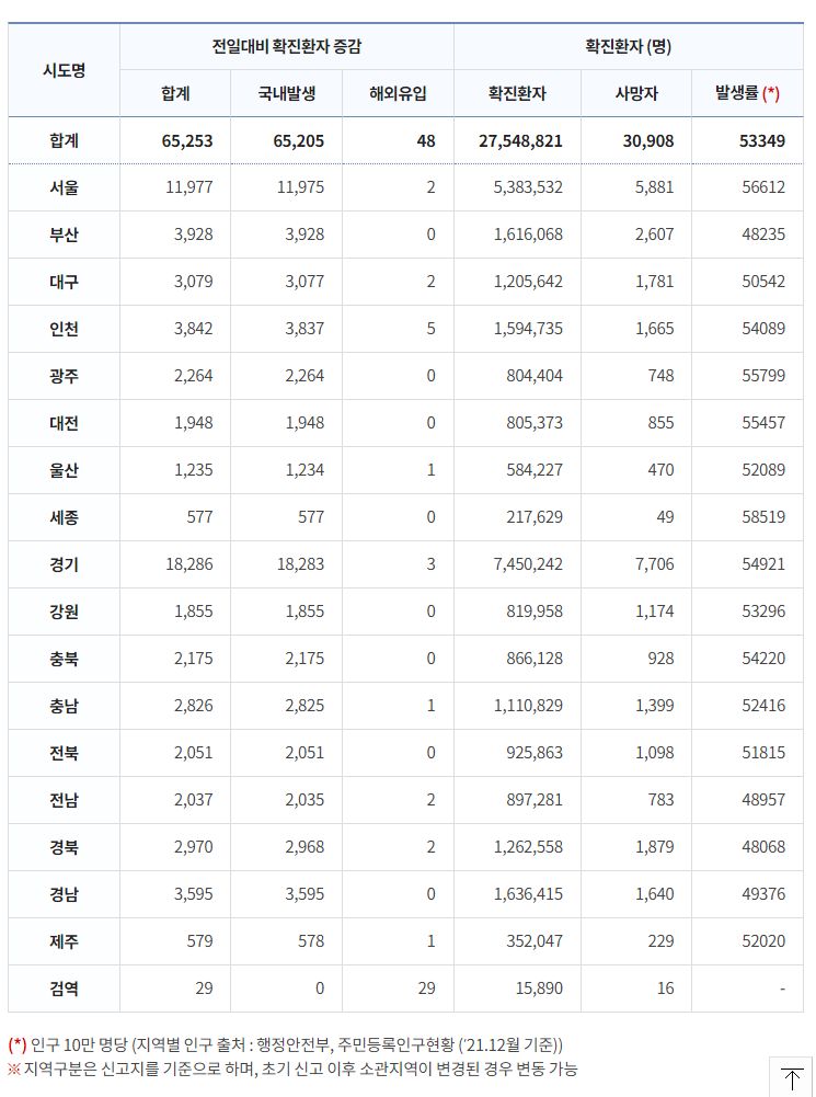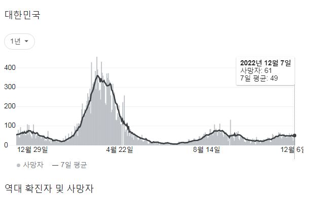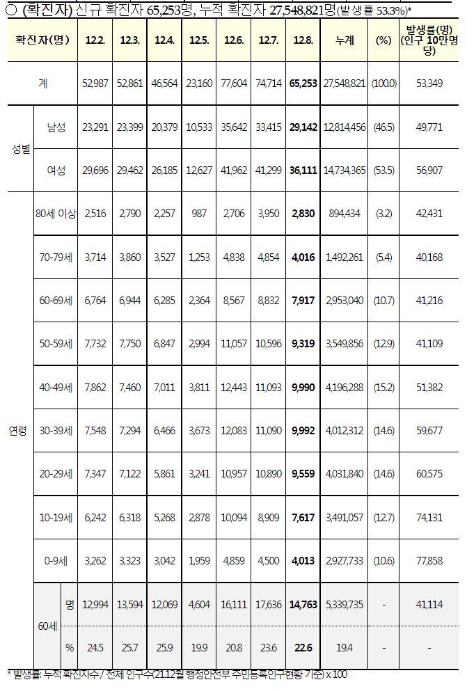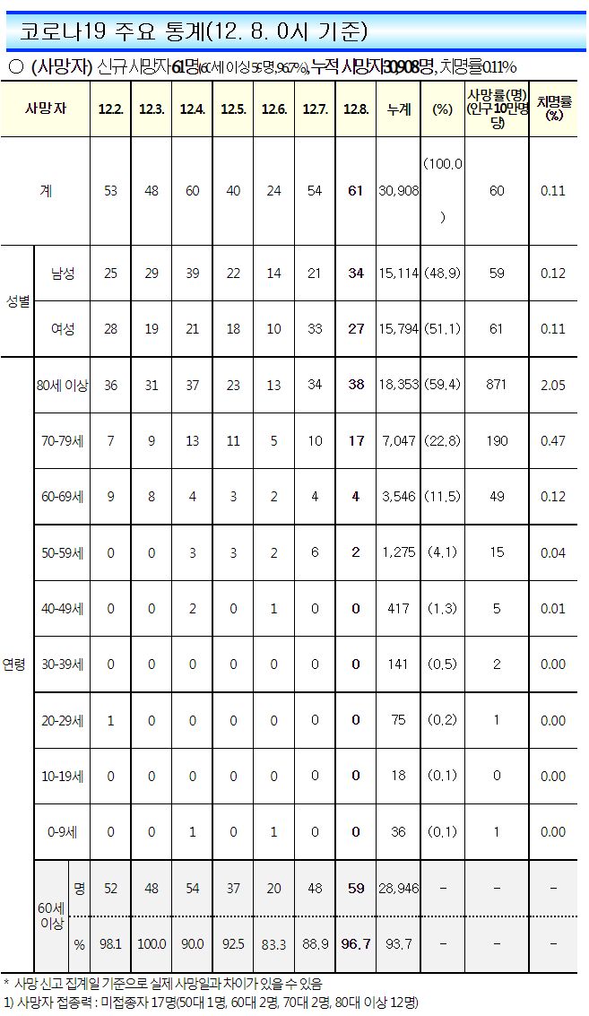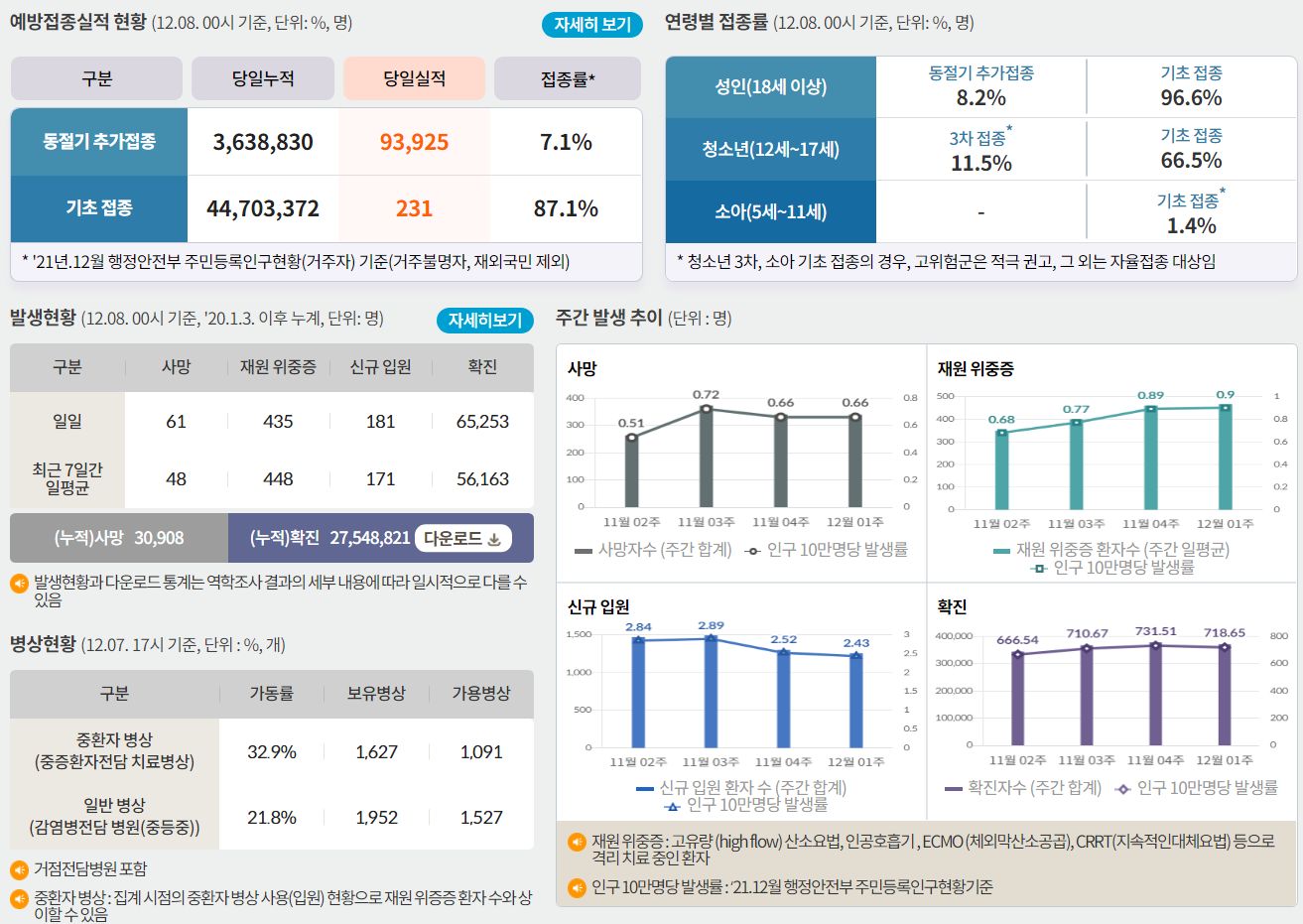 코로나19집계(2022.12.8. 0시기준): 확진 +6.5만, 사망 +61명, 중환자병상가동률 33% 본문