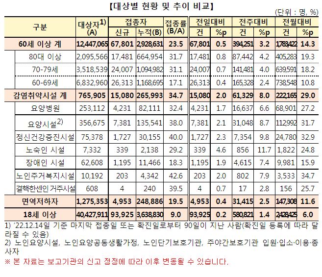 | 코로나19 예방접종, 12.17일부터 3,4차는 없이 바로 동절기 예방접종으로/:/ 요양병원 등 시설수용 인지저하자 백신접종 동의절차 개선/:/이상반응신고통계 (0) | 2022.12.08 |