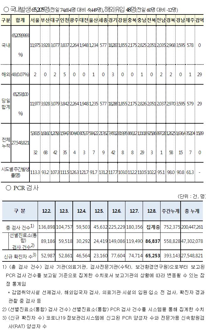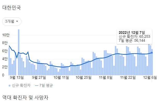 코로나19집계(2022.12.8. 0시기준): 확진 +6.5만, 사망 +61명, 중환자병상가동률 33% 본문