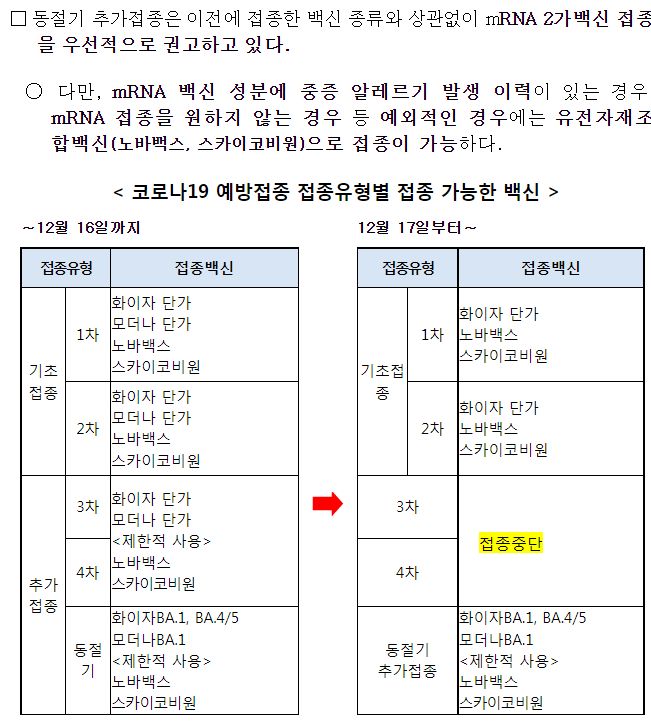 동절기 추가접종은 2가백신으로. mRNA백신접종을 원하지 않는다면 노바백스나 스카이코비원 접종가능.