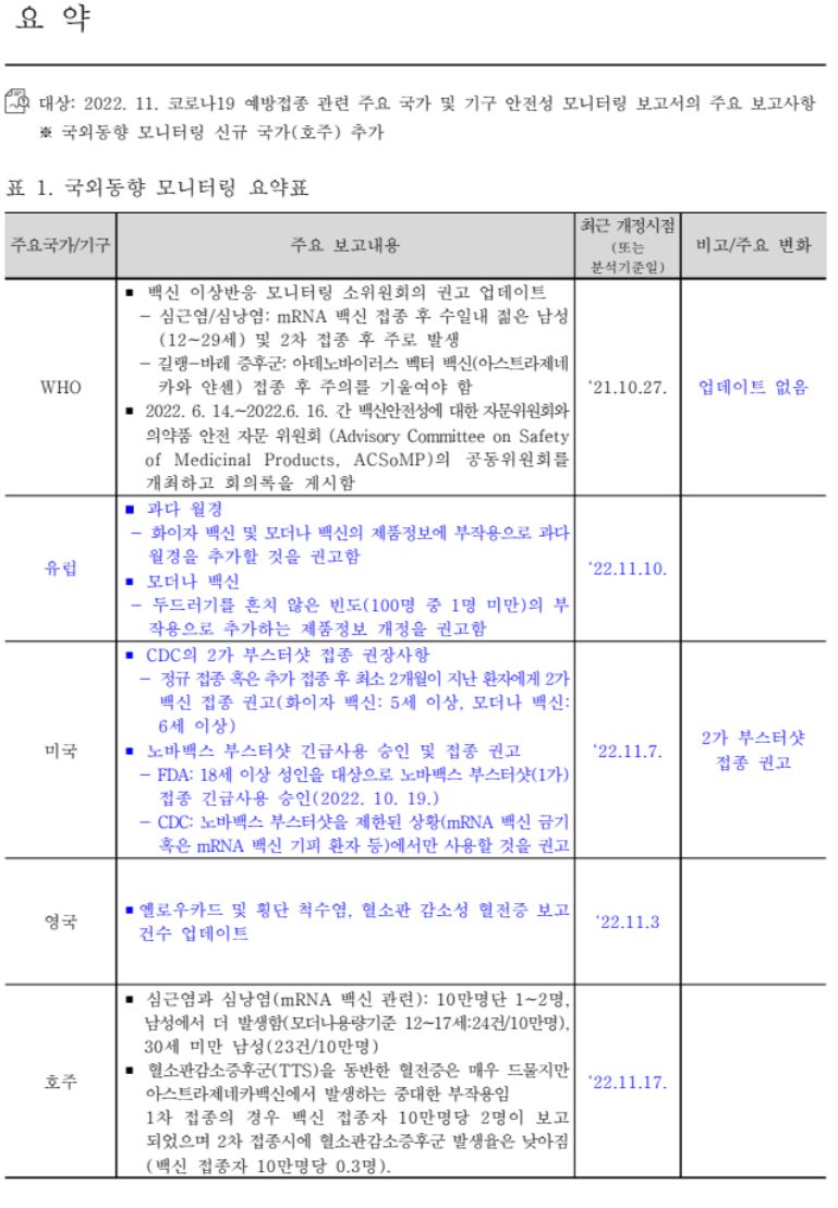 국외 코로나19 예방접종 이상사례 모니터링(한국보건의료연구원, 11월) 본문