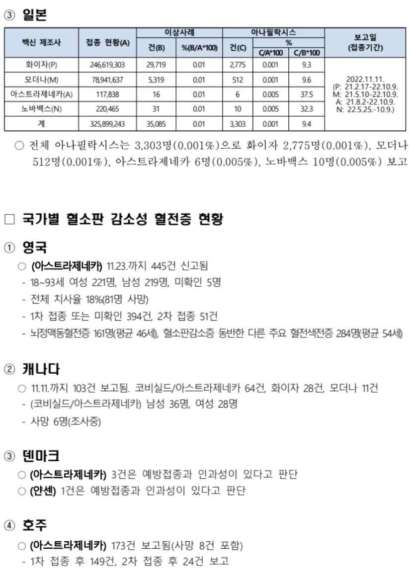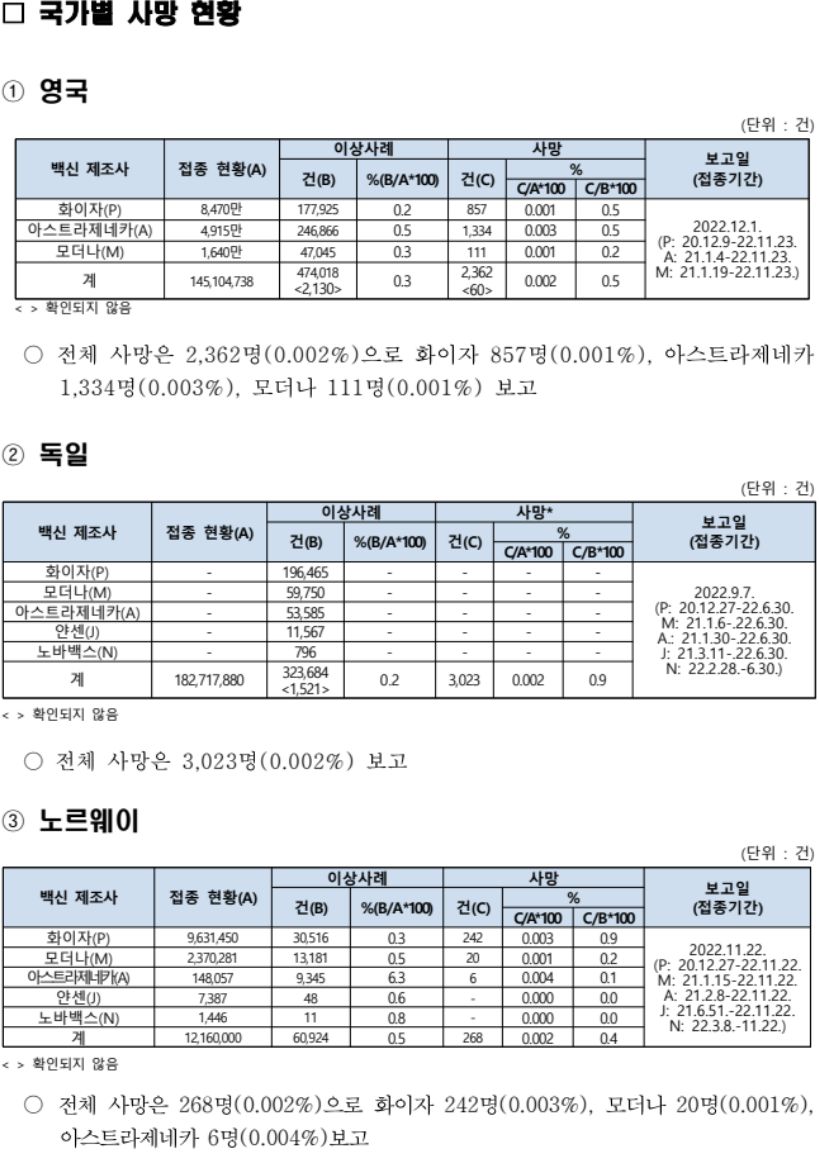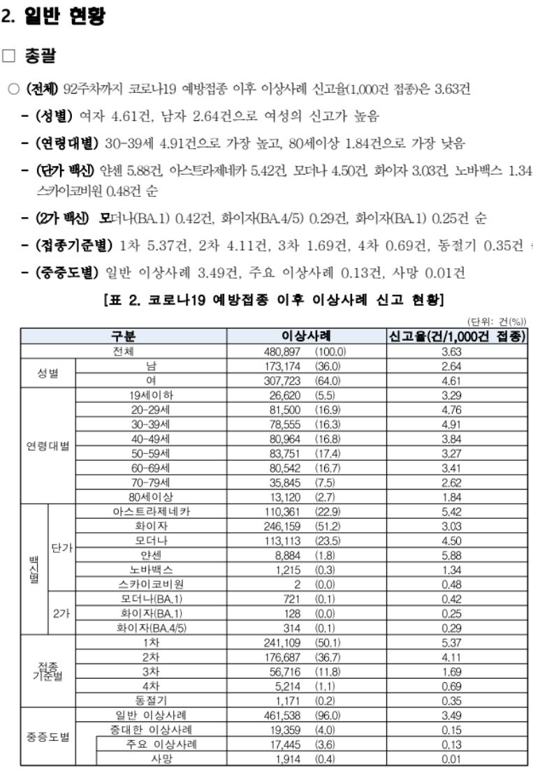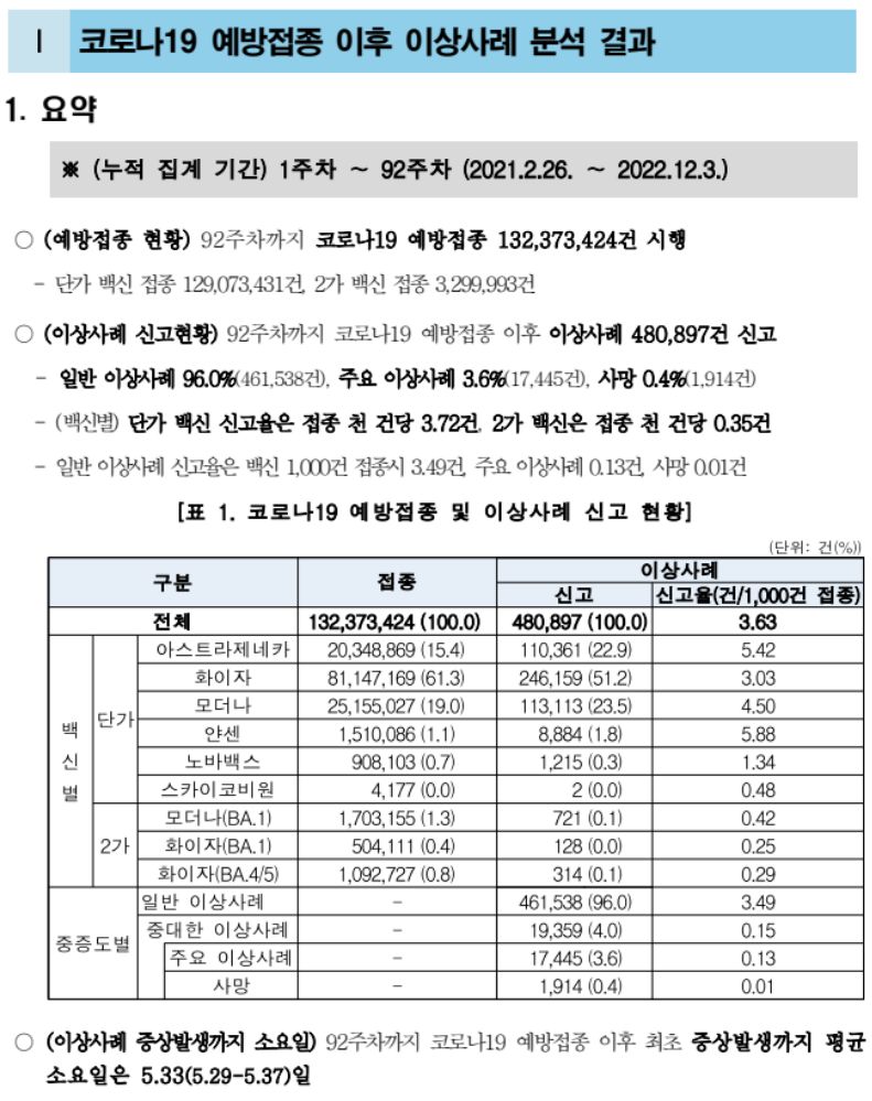 코로나19(2022.12.8) 예방접종 안전성 보고서(92차)/:/ 국내이상반응발생동향, 국외이상반응발생동향 본문