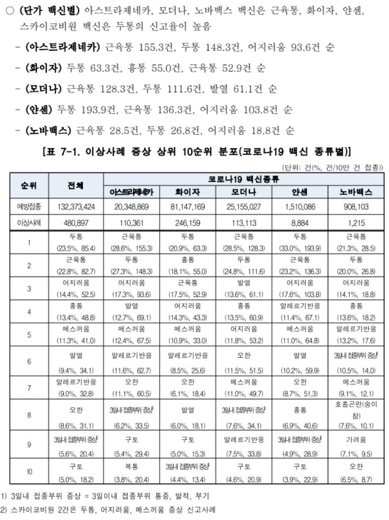 Ⅰ. 코로나19 예방접종 이후 이상사례 분석 결과