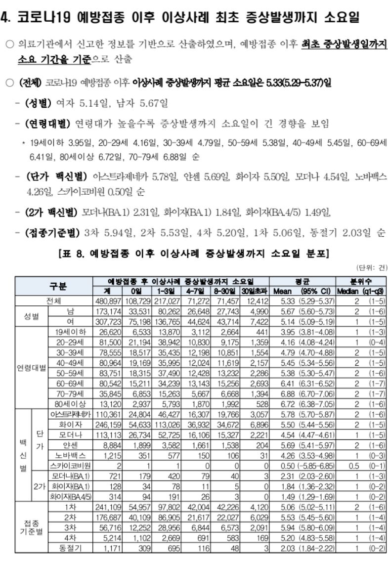 4. 코로나19 예방접종 후 이상사례 증상발생까지 소요일