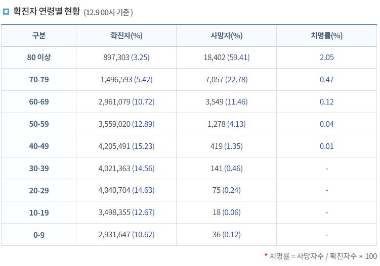 | 코로나19집계(2022.12.12. 0시기준): 확진 +2.6만, 사망 +30명, 중환자병상가동률 37% (0) | 2022.12.12 |