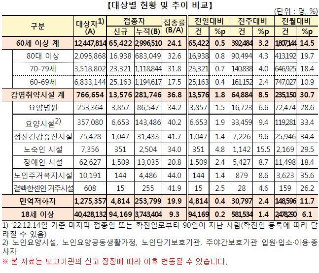 | 코로나19 예방접종, 12.17일부터 3,4차는 없이 바로 동절기 예방접종으로/:/ 요양병원 등 시설수용 인지저하자 백신접종 동의절차 개선/:/이상반응신고통계 (0) | 2022.12.08 |