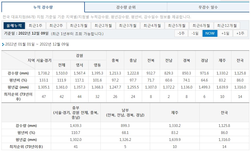 가뭄관련 종합정보를 제공하는 국가가뭄정보포털