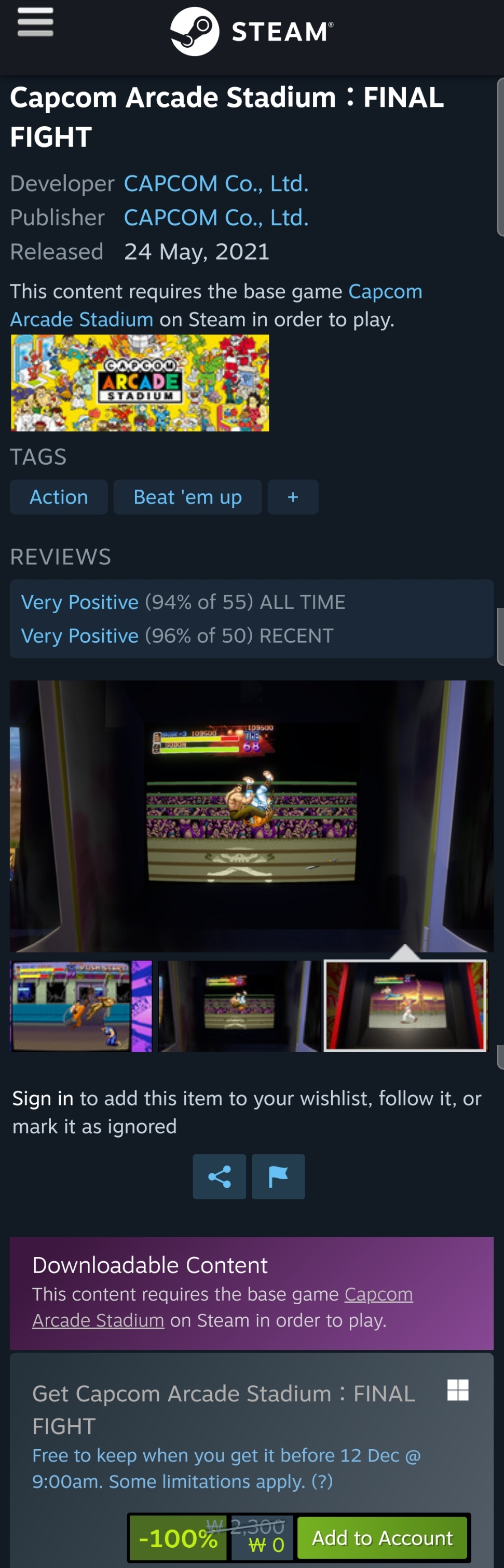 (스팀 무료게임) Capcom Arcade Stadium:FINAL FIGHT 본문