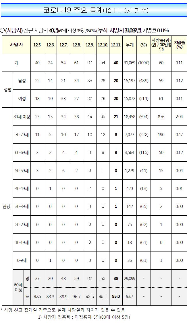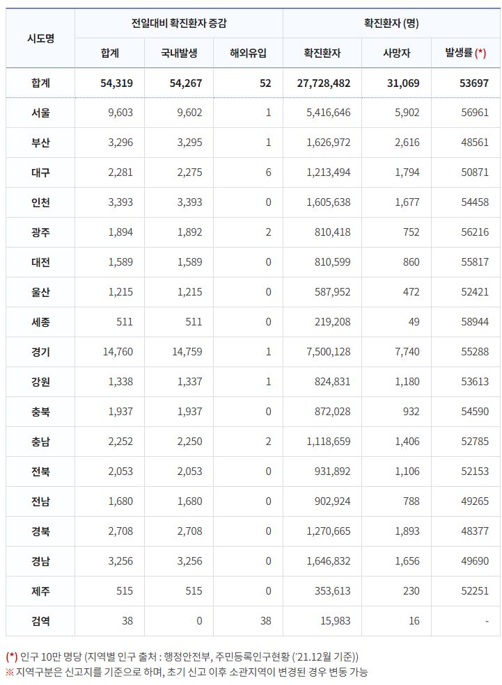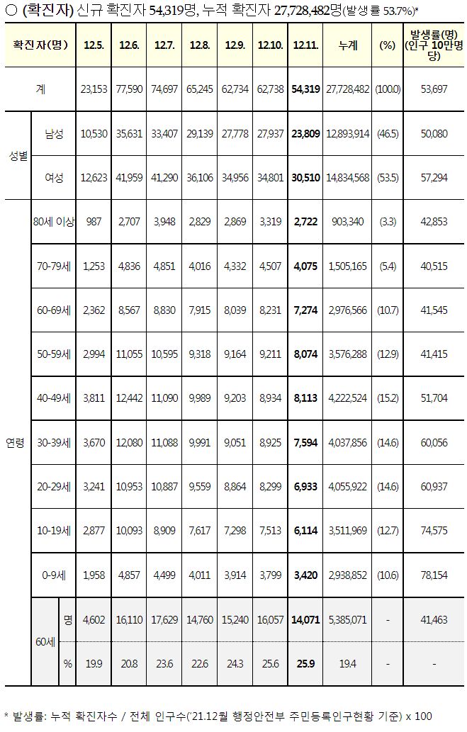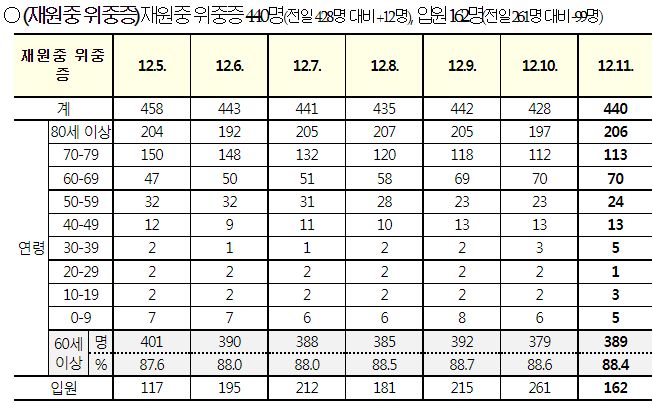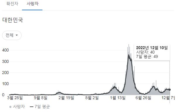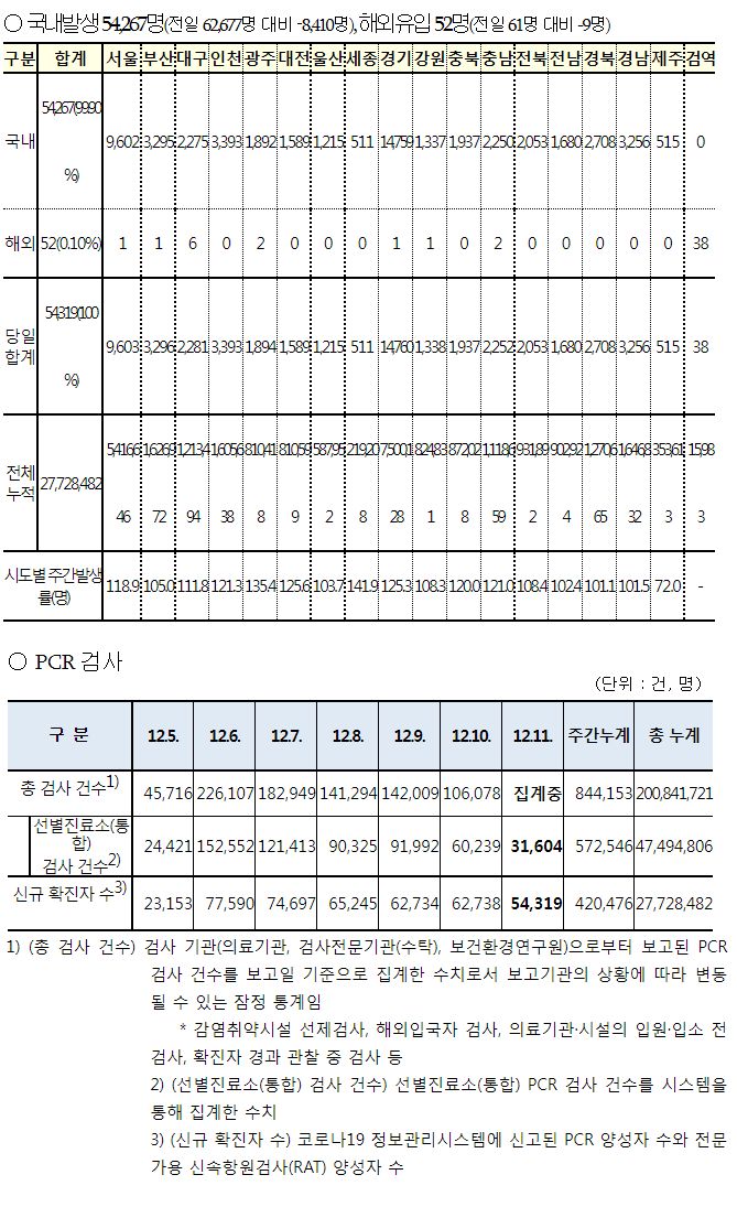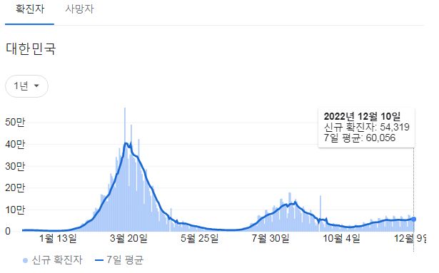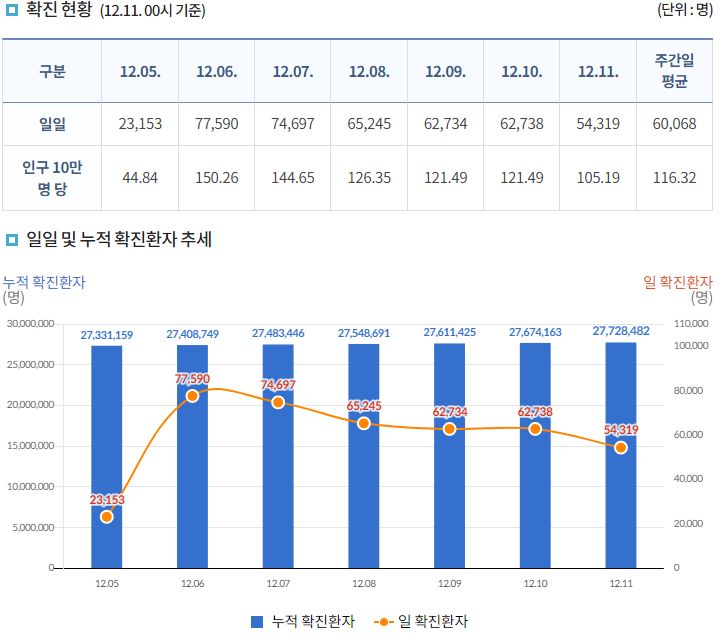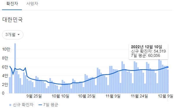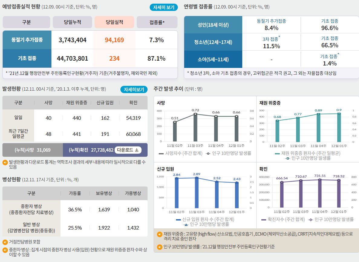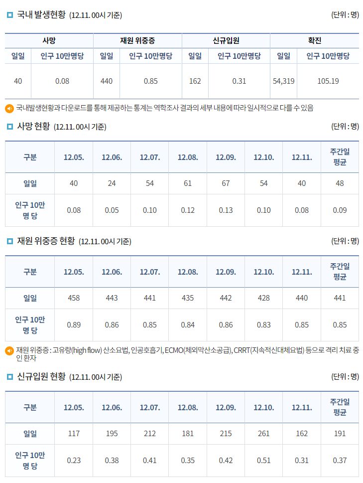 코로나19집계(2022.12.11. 0시기준): 확진 +5.4만, 사망 +40명, 중환자병상가동률 37% 본문