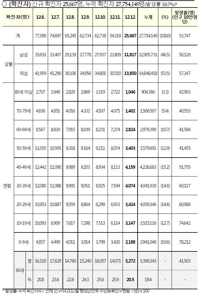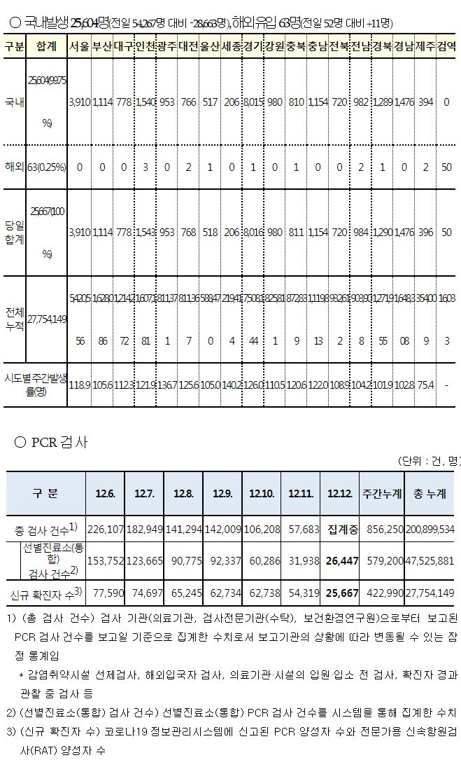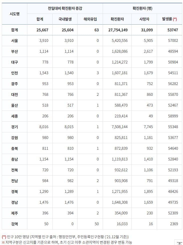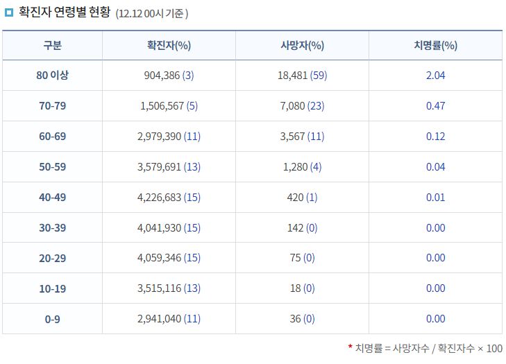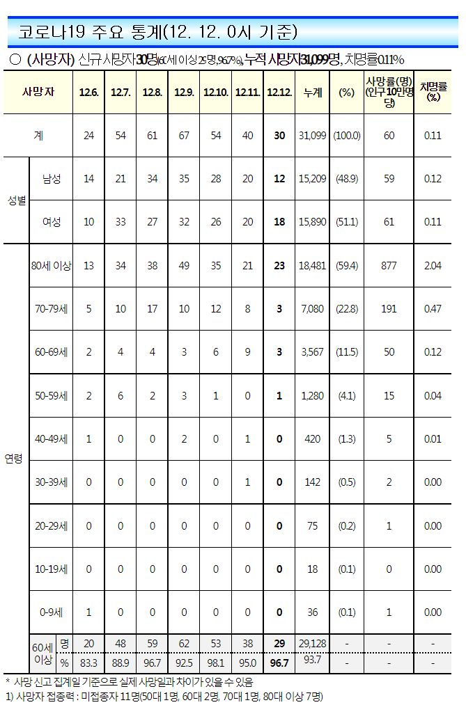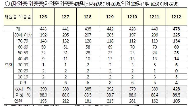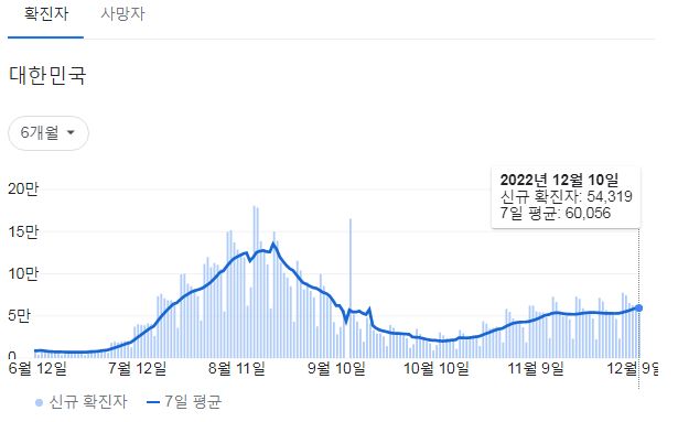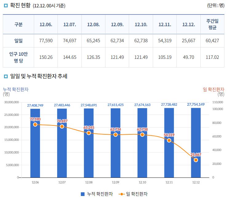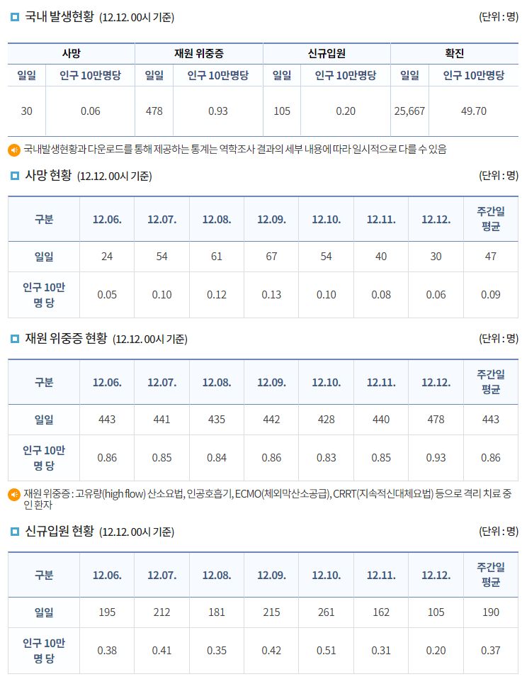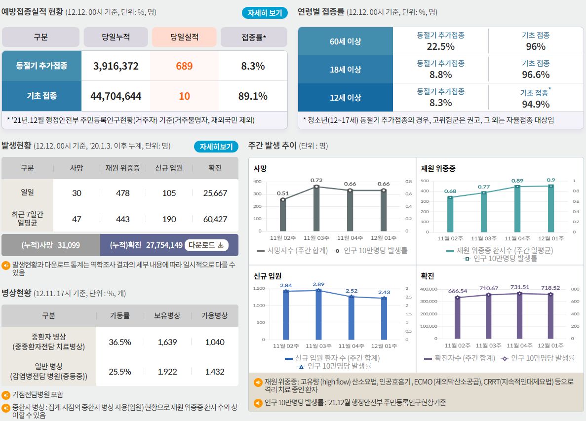 코로나19집계(2022.12.12. 0시기준): 확진 +2.6만, 사망 +30명, 중환자병상가동률 37% 본문