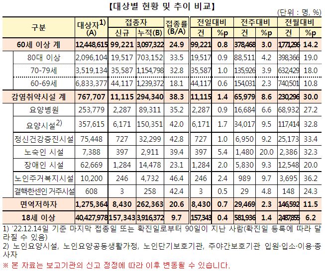 | 코로나19(2022.12.9) 동절기 집중접종 기간 → 12.31까지 연장. 동절기 청소년(12-17세) 코로나19 2가백신 접종 등 (0) | 2022.12.14 |