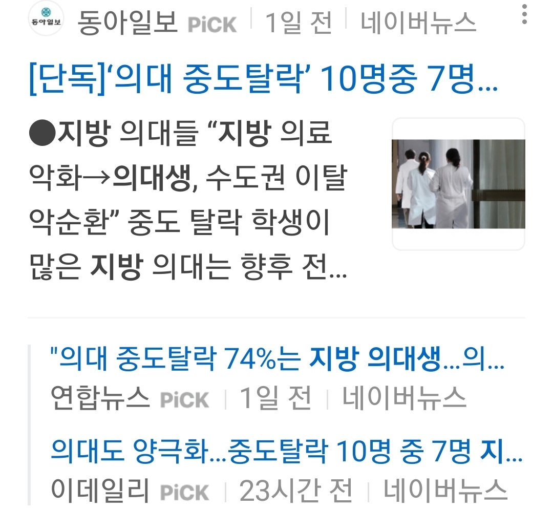 최근 3년간 전국 의과대의 중도 탈락 학생 10명 중 7명이 지방 의대 출신으로 나타났다. 최상위권이 진학하는 의대에서도 서울 쏠림-지방 기피 현상이 두드러진 것으로, 열악한 지역 의료 인프라