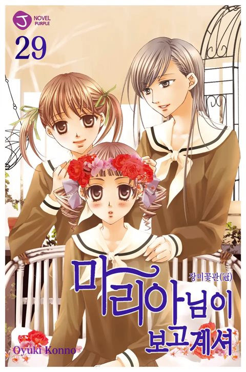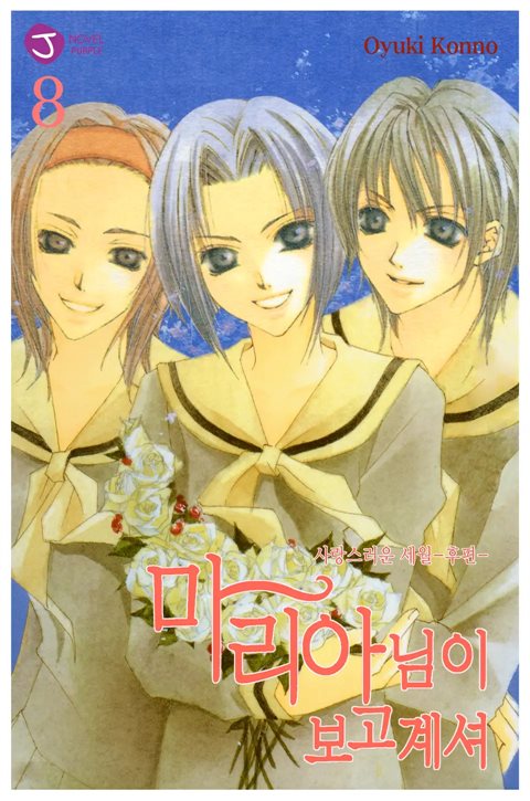 일본 원판은 표지에 몇 권인가하는 권 번호가 큼지막하게 적혀있지 않고, 그냥 "마리아님이 보고 계셔 ~ 그 권의 부제" 형식으로 표지가 돼있습니다.