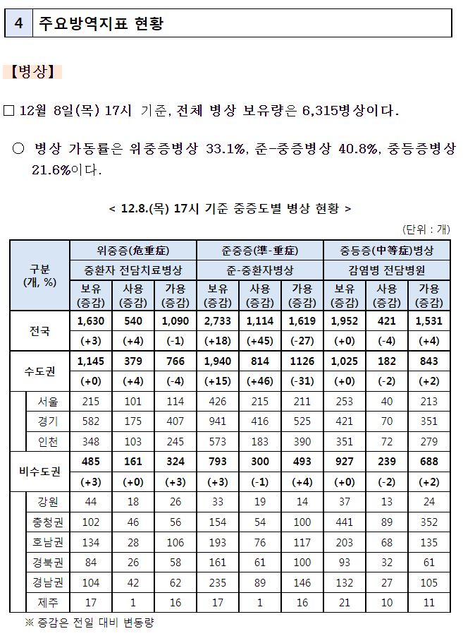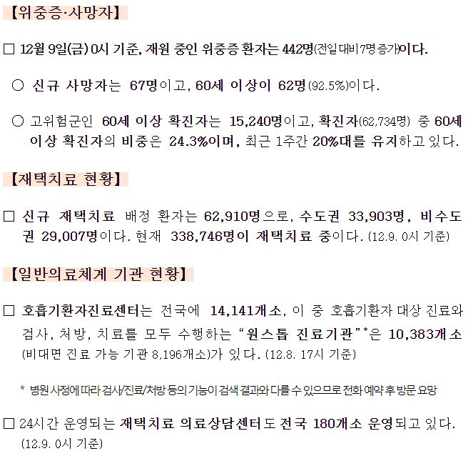 최근 1주 일평균 재원중 위중증 환자와 사망자 중 60세 이상은 각각 414명(88.7%), 46명(95.8%).