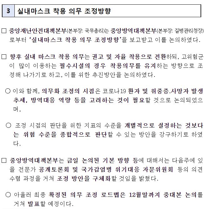 실내마스크 착용 의무 조정방향