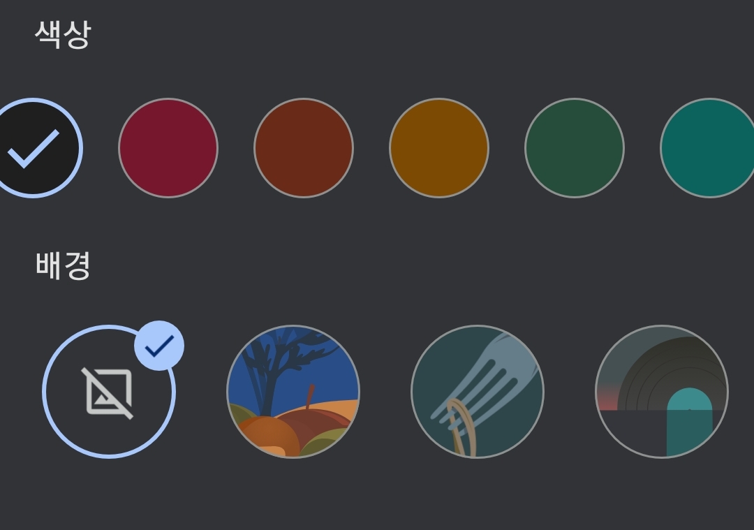 구글킵의 메모 바탕색은 몇 가지가 있지만,