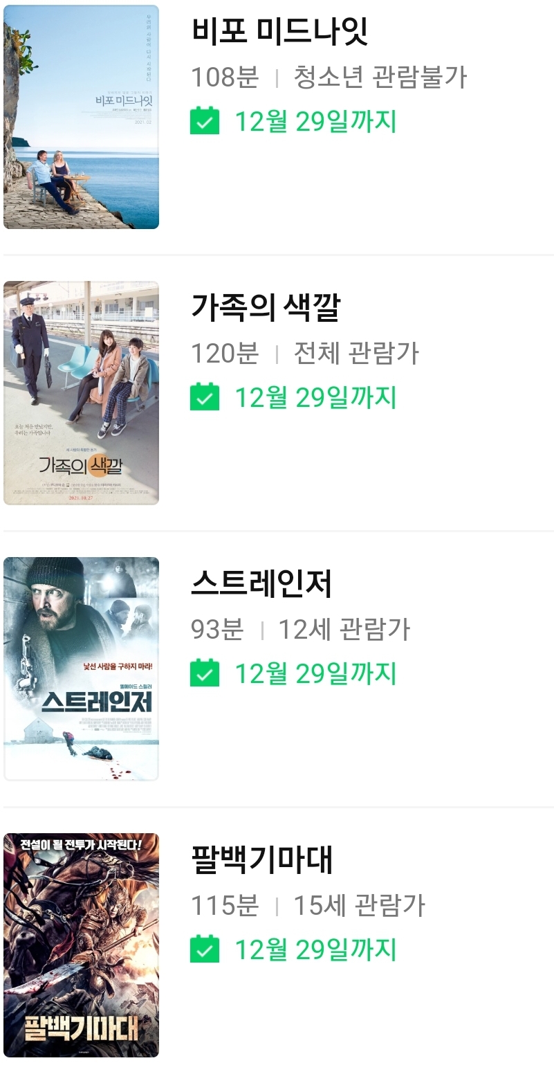 ~12.29.까지.. 비포 미드나잇, 가족의 색깔, 스트레인저, 팔백기마대, 글애디에이터:레전드워리어, 눈감은 여름