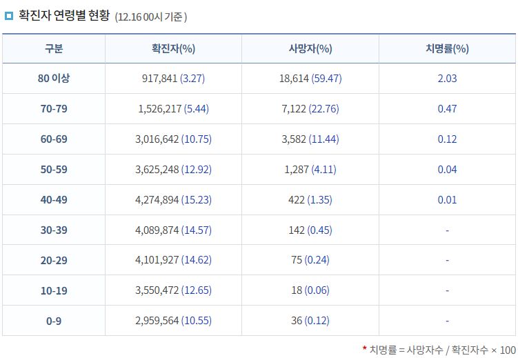| 코로나19집계(2022.12.19. 0시기준): 확진 +2.7만, 사망 +39명, 중환자병상가동률 38% (0) | 2022.12.19 |