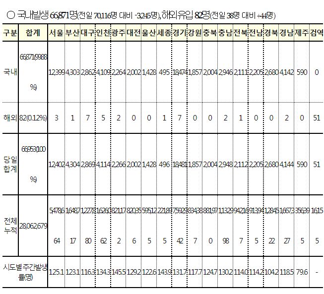 재택치료자수는 아래 표에서 7일간의 신규확진자합계에서 7일간의 신규입원자합계를 빼면 비슷합니다.