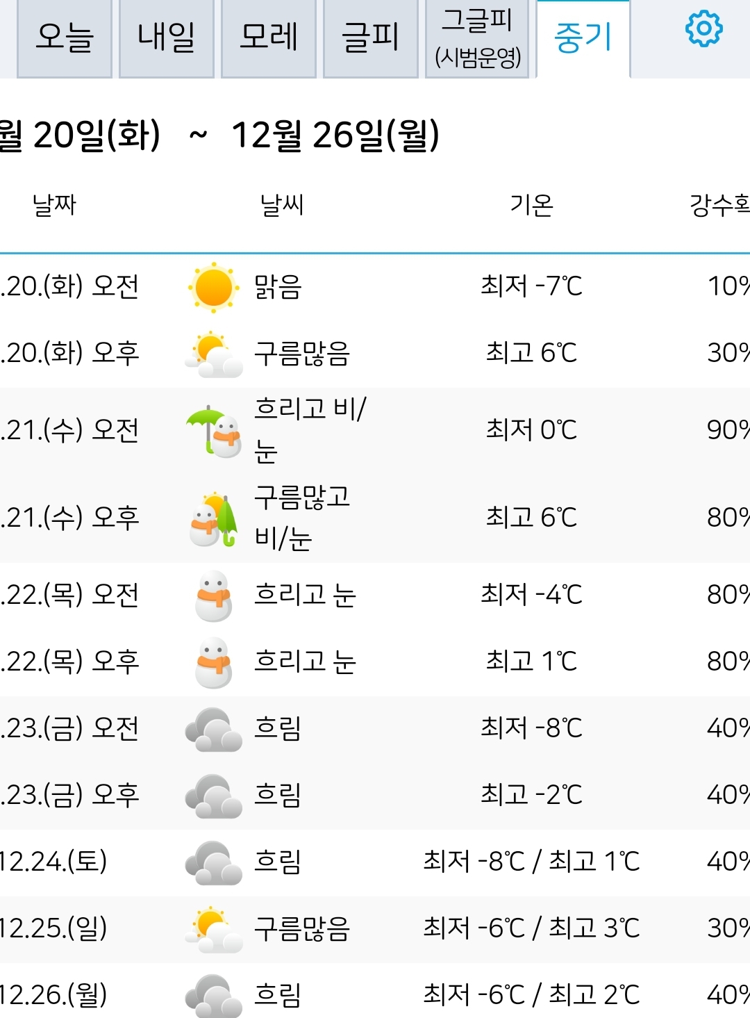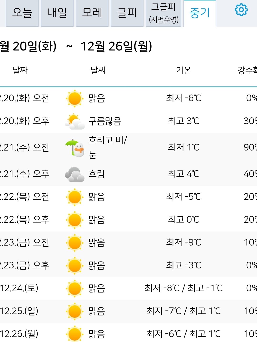 토,일,월 한파예보 + 성탄절(25일)까지의 중기예보 본문