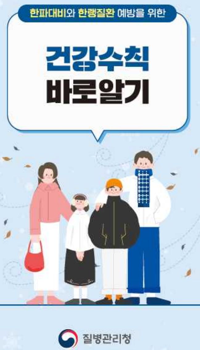 ※ 자료 내려받기: 질병관리청(www.kdca.go.kr) > 건강정보 > 건강위해정보 > 한파 > 건강수칙 홍보자료