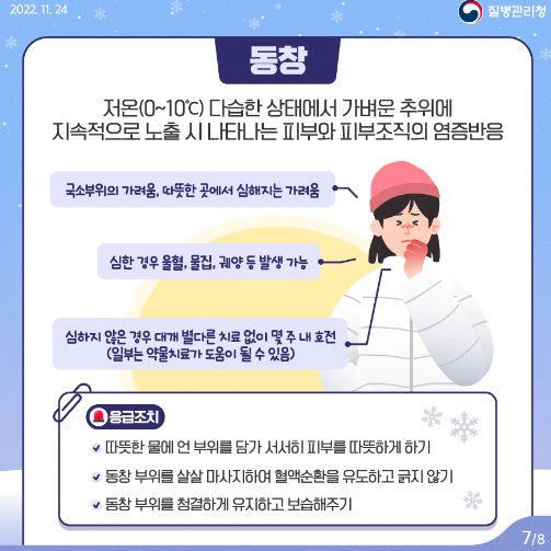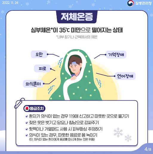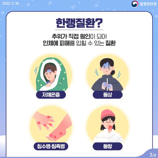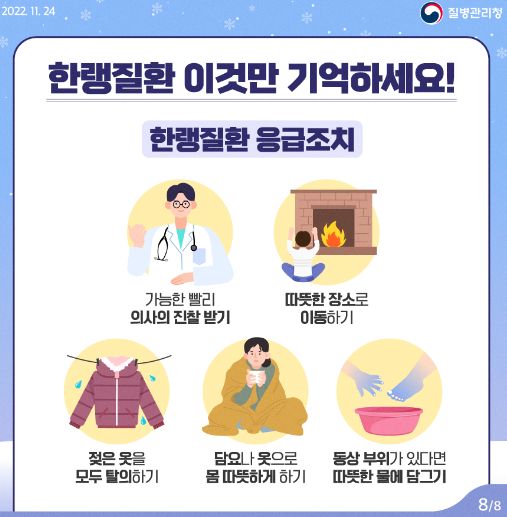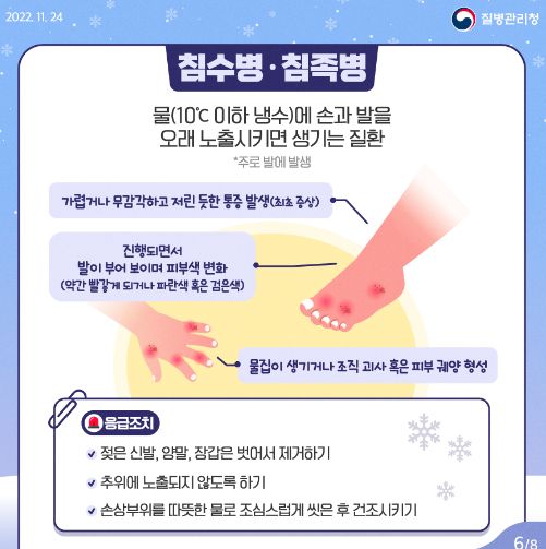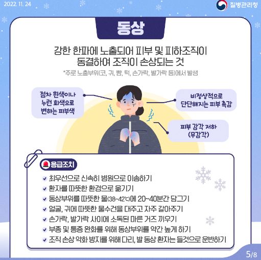 한랭질환(저체온증, 동상, 동창, 침수병, 침족병) 주의 안내 - 질병관리청(2022.12.16) 본문