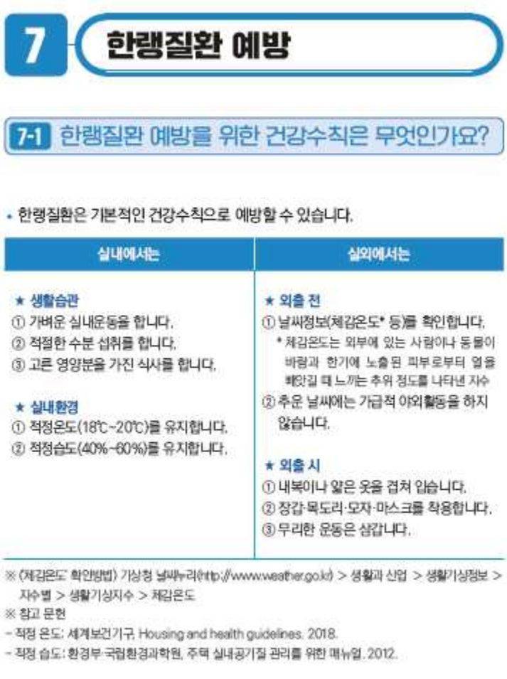 ㅡ 한파일 때는 갑작스러운 추위 노출이나 무리한 신체활동이나 과음을 피해야