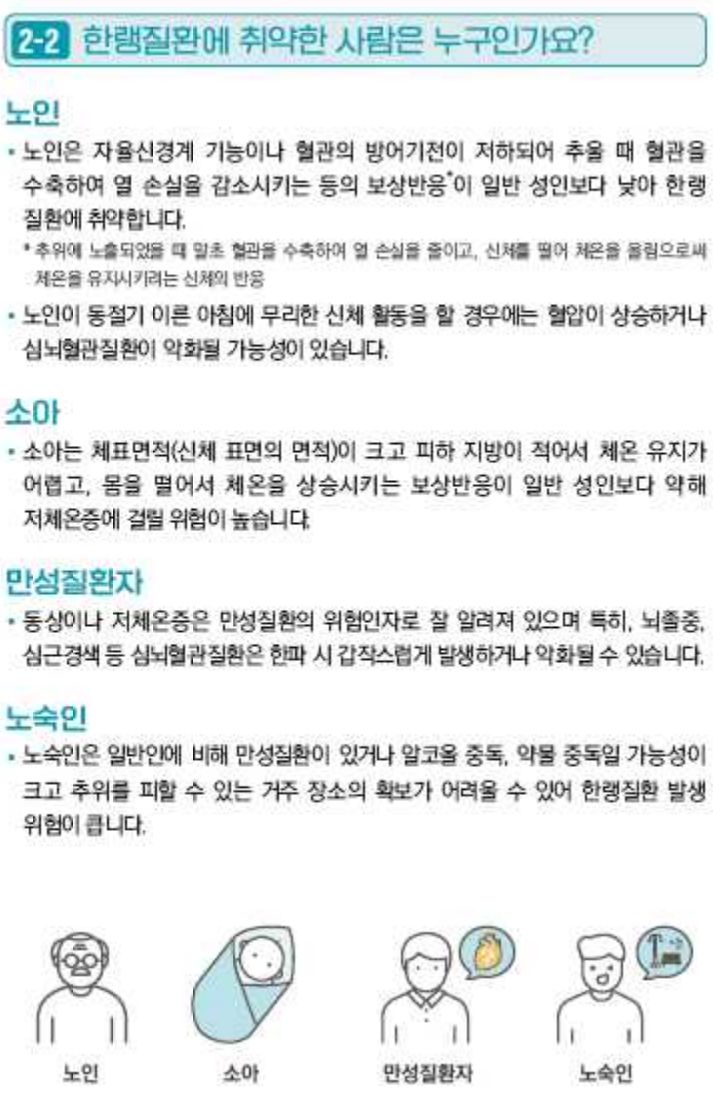 ㅡ 어르신과 어린이는 일반 성인보다 체온 유지에 취약, 난방이 충분하지 않을 때 특히 주의