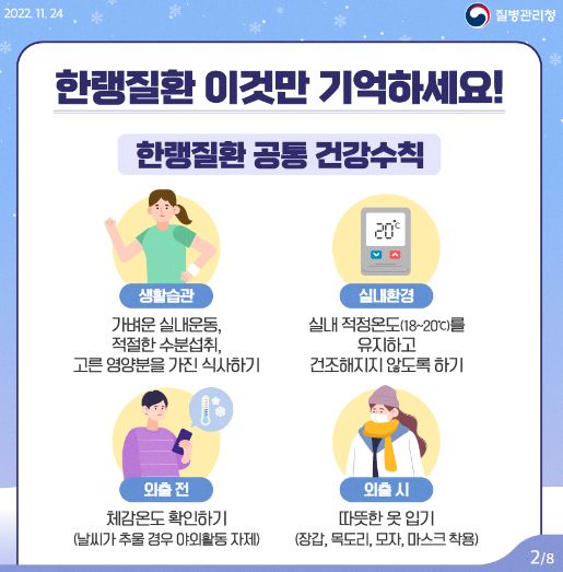 ※ 자료 내려받기: 질병관리청(www.kdca.go.kr) > 건강정보 > 건강위해정보 > 한파 > 건강수칙 홍보자료