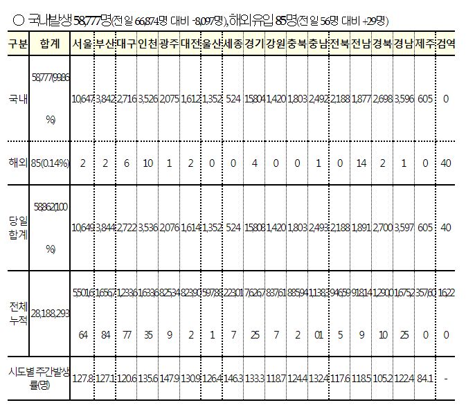 재택치료자수는 아래 표에서 7일간의 신규확진자합계에서 7일간의 신규입원자합계를 빼면 비슷합니다.