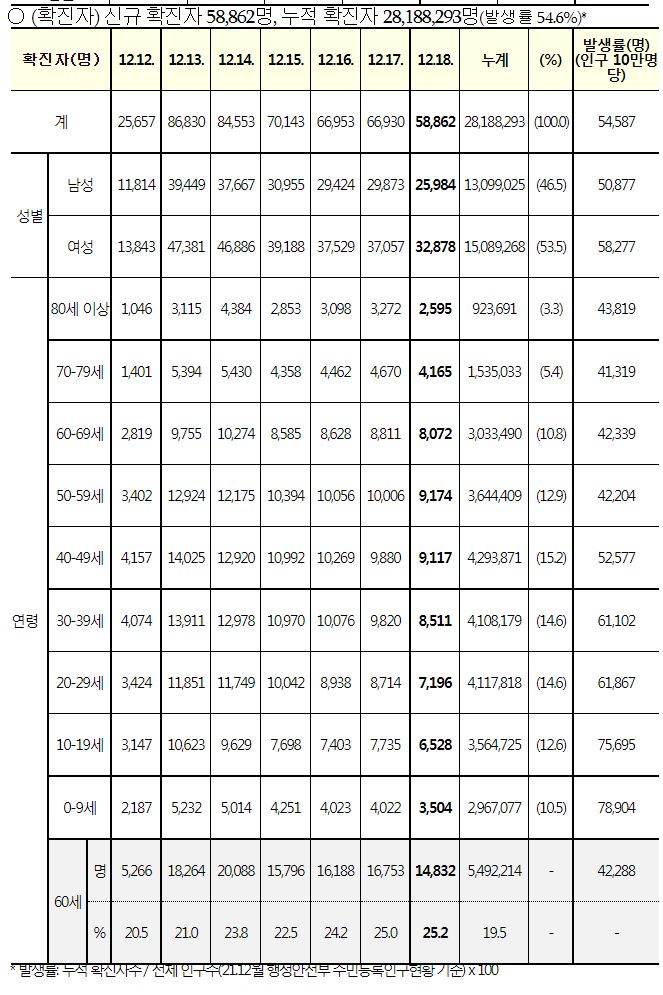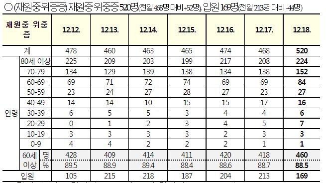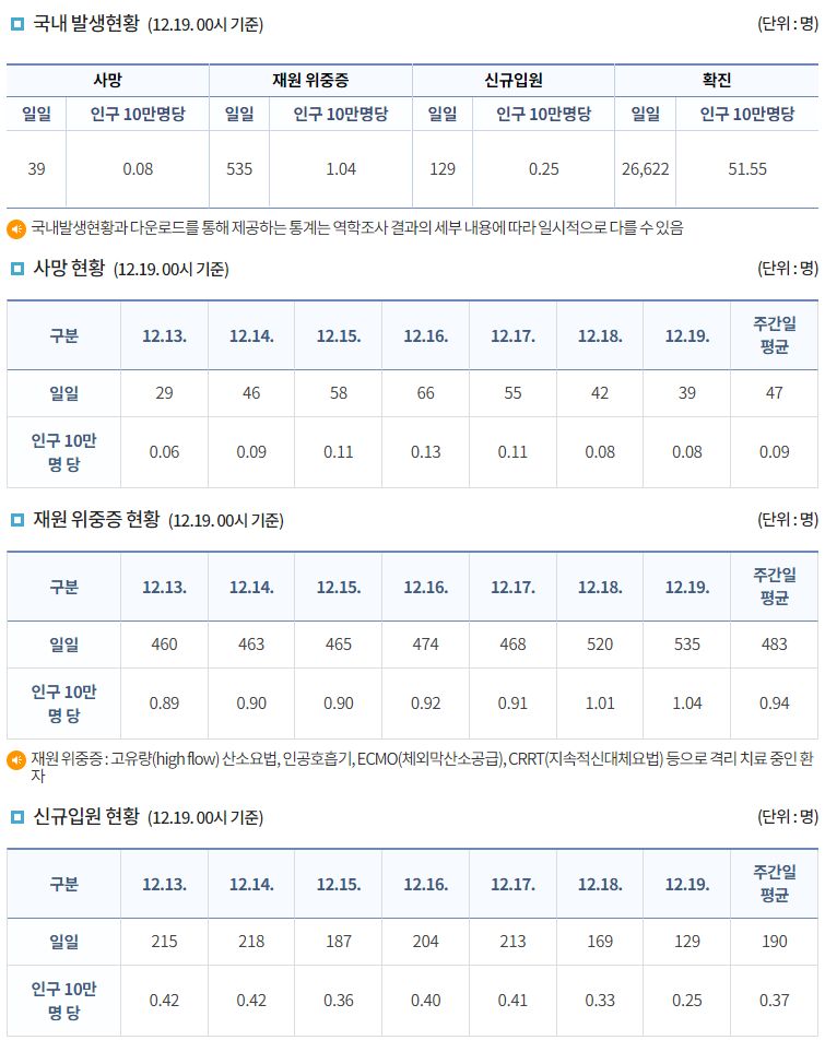 코로나19집계(2022.12.18. 0시기준): 확진 +2.7만, 사망 +42명, 중환자병상가동률 38% 본문