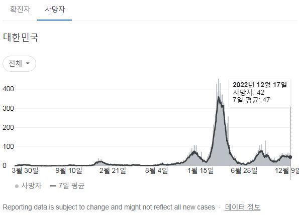 질병관리청의 오늘 발표는 구글그래프에는 저녁쯤에 반영됩니다.