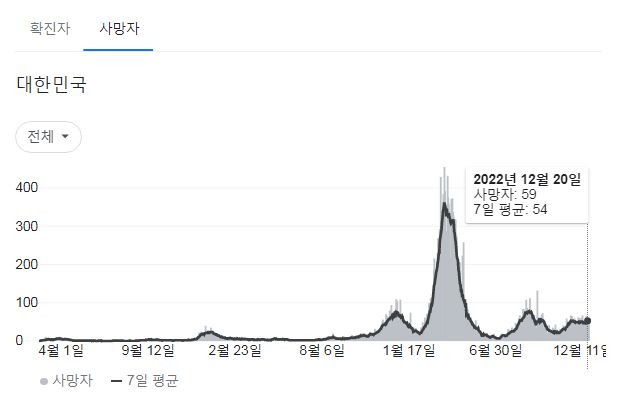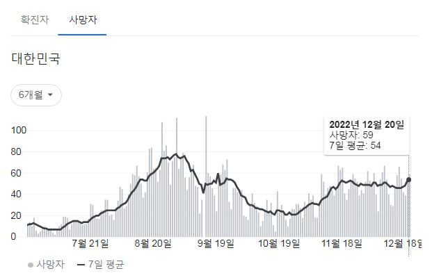 | 코로나19집계(2022.12.22. 0시기준): 확진 +7.6만, 사망 +62명, 중환자병상가동률 35% (0) | 2022.12.22 |
