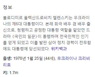 전쟁 전 젤렌스키는 유약하고 만만해보이는 인상에3 영국의 코미디언같이 생겼다는 느낌을 받았습니다. 젤렌스키자신도 연예인출신이지만4 트럼프와 같이 찍은 저 사진 속 이마에 주름지은 얼굴을 보면 저는 그 "미스터 빈"을 연기한 로완 앳킨슨이 떠올랐습니다. ^^ 그리고 젤렌스키와 앳킨슨 둘 다 배울 만큼 배운 엘리트기도 합니다.