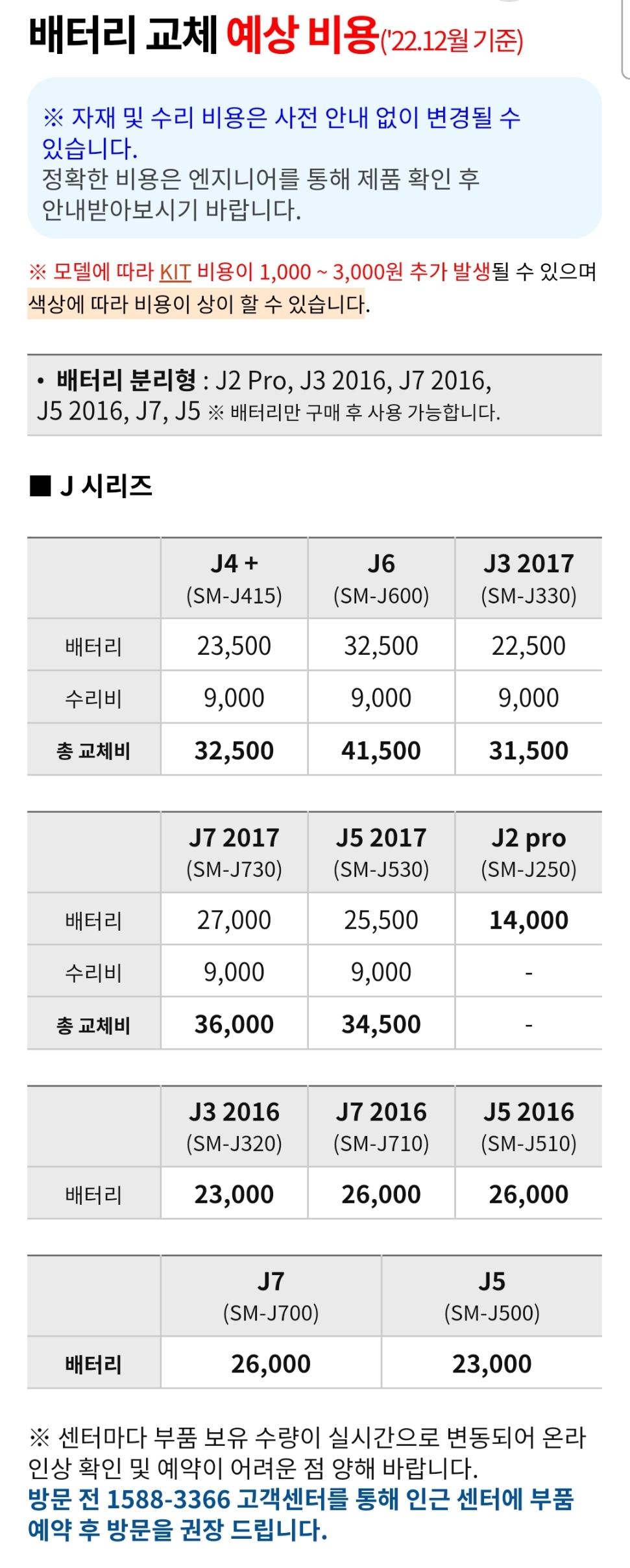 (2022.12) 삼성전자 갤럭시 J시리즈 배터리 교체비용 본문