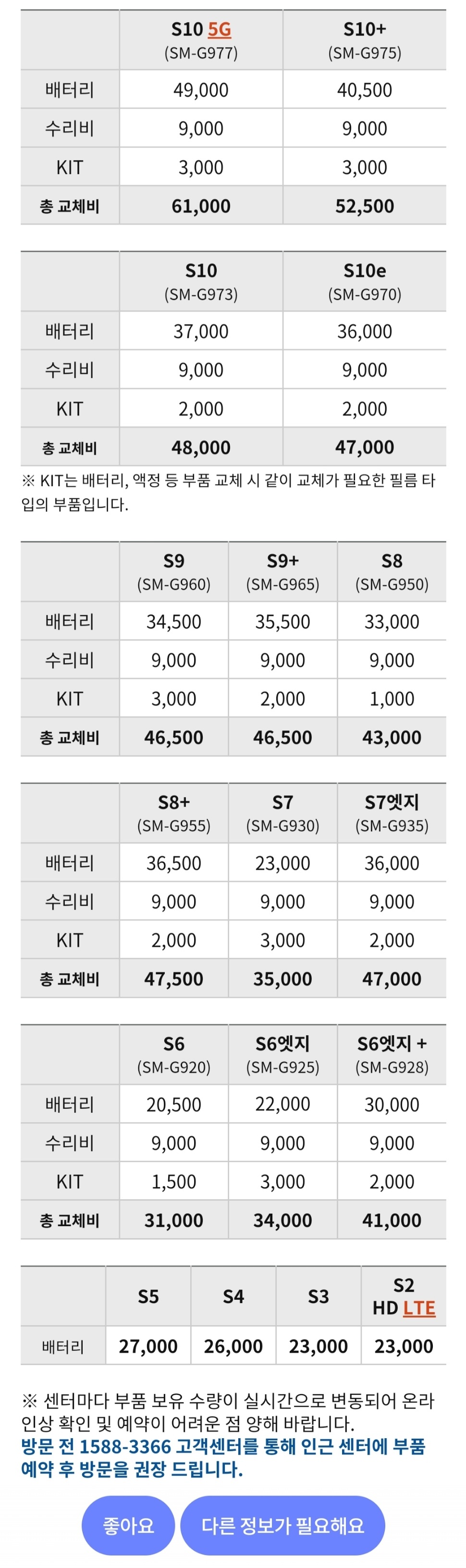 | (2022.12) 삼성전자 갤럭시 그 외 모델(플립제외) 배터리 교체비용 (0) | 2022.12.25 |