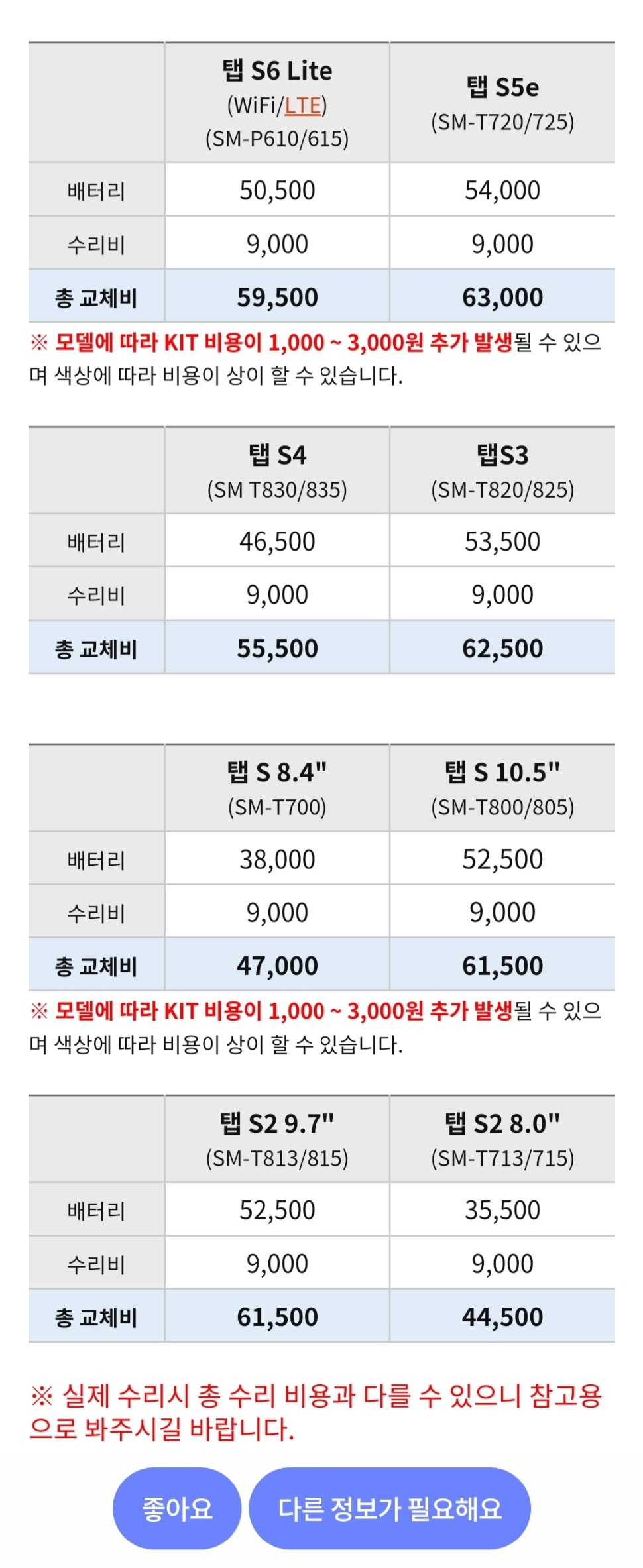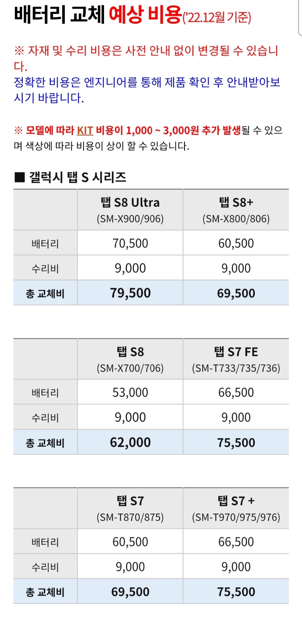 (2022.12) 삼성전자 갤럭시 탭S 시리즈 배터리 교체비용 본문