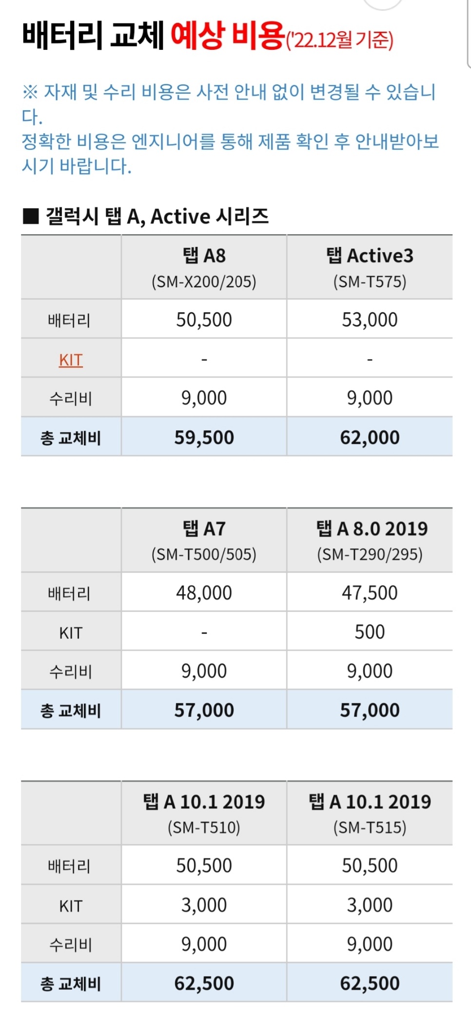 | (2022.12) 삼성전자 갤럭시 탭S 시리즈 배터리 교체비용 (0) | 2022.12.25 |