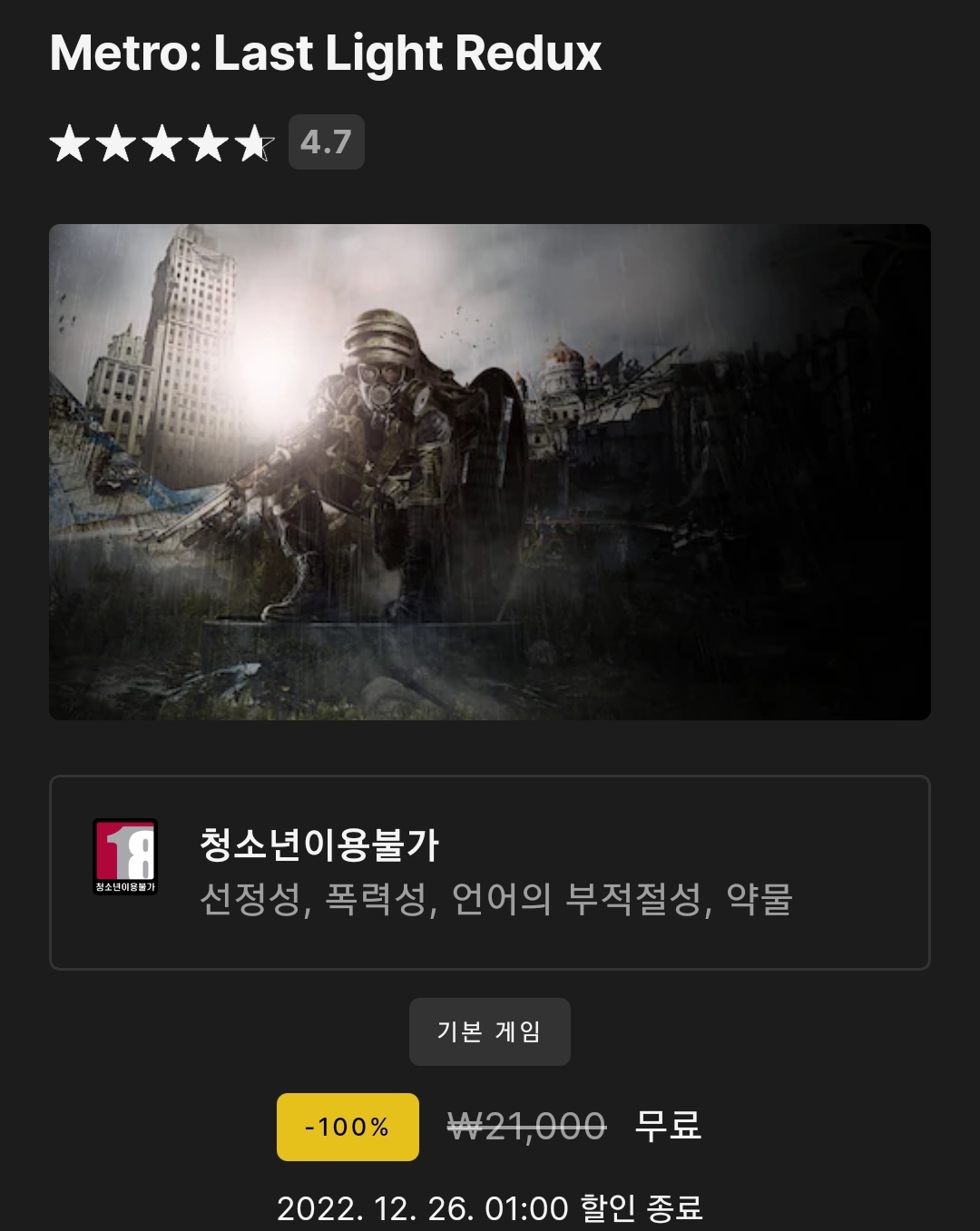 (에픽게임즈 무료게임) Metro: Last Light Redux 본문