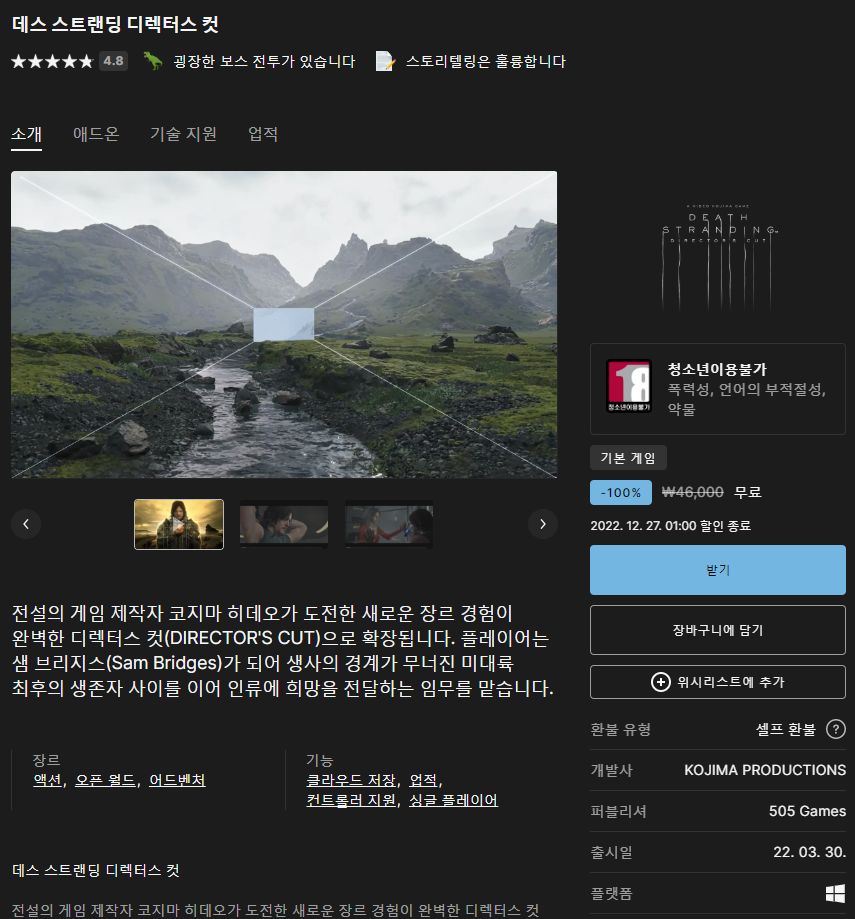 (에픽게임즈 무료게임) 데스 스트랜딩 디렉터스 컷 본문