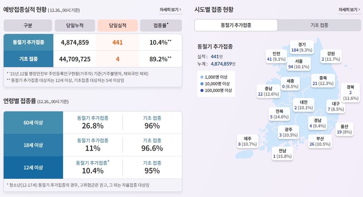 출처는 질병관리청의 홈과 코로나19 예방접종통계페이지, 그리고 구글입니다.