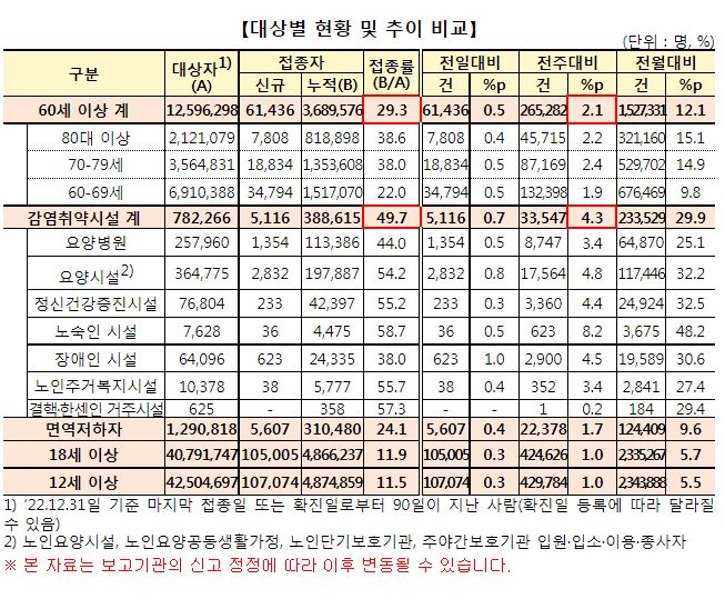 | 코로나19(2022.12.22) 동절기 추가접종관련 보도자료, 이상반응집계 관련 보도자료 등 (0) | 2022.12.28 |