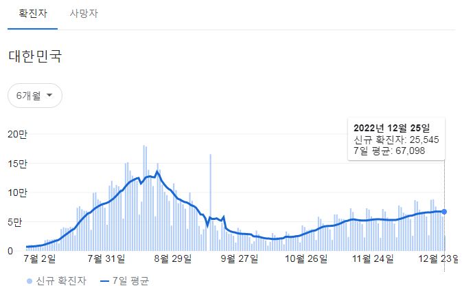 | 코로나19집계(2022.12.23. 0시기준): 확진 +6.8만, 사망 +63명, 중환자병상가동률 35% (0) | 2022.12.23 |