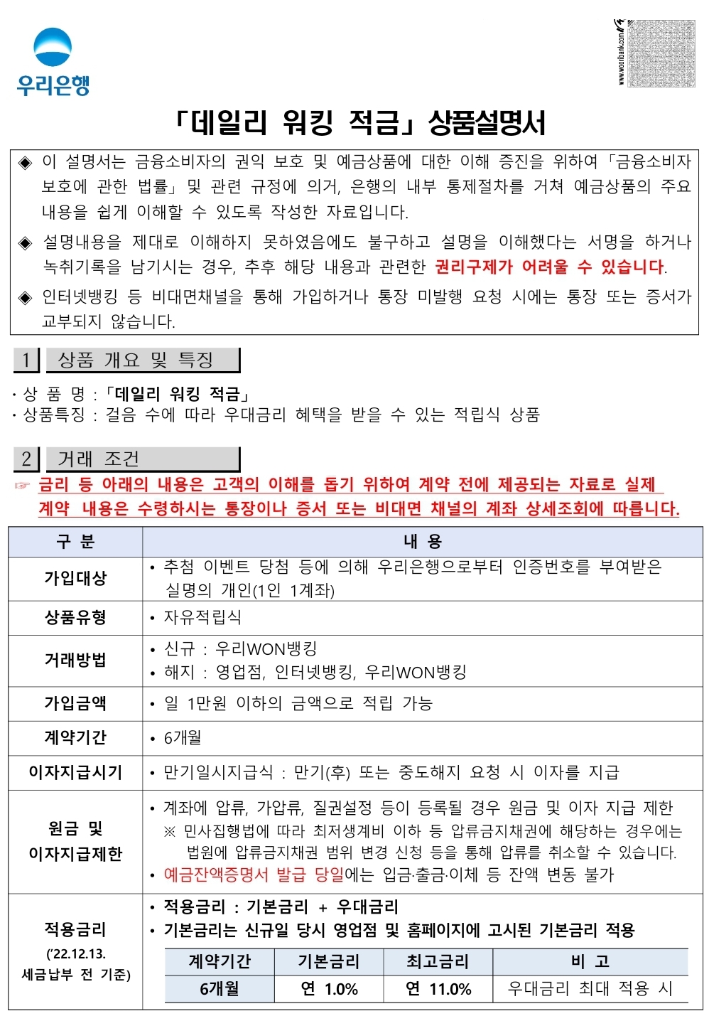 우리은행의 데일리 워킹 적금: 건강컨셉 이벤트상품 본문