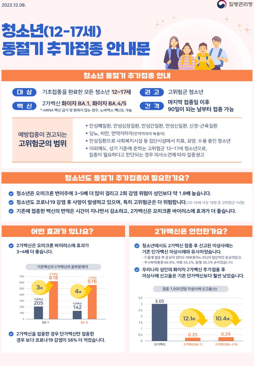 청소년(12-17세) 동절기 추가접종 안내문 .. 2022.12.08