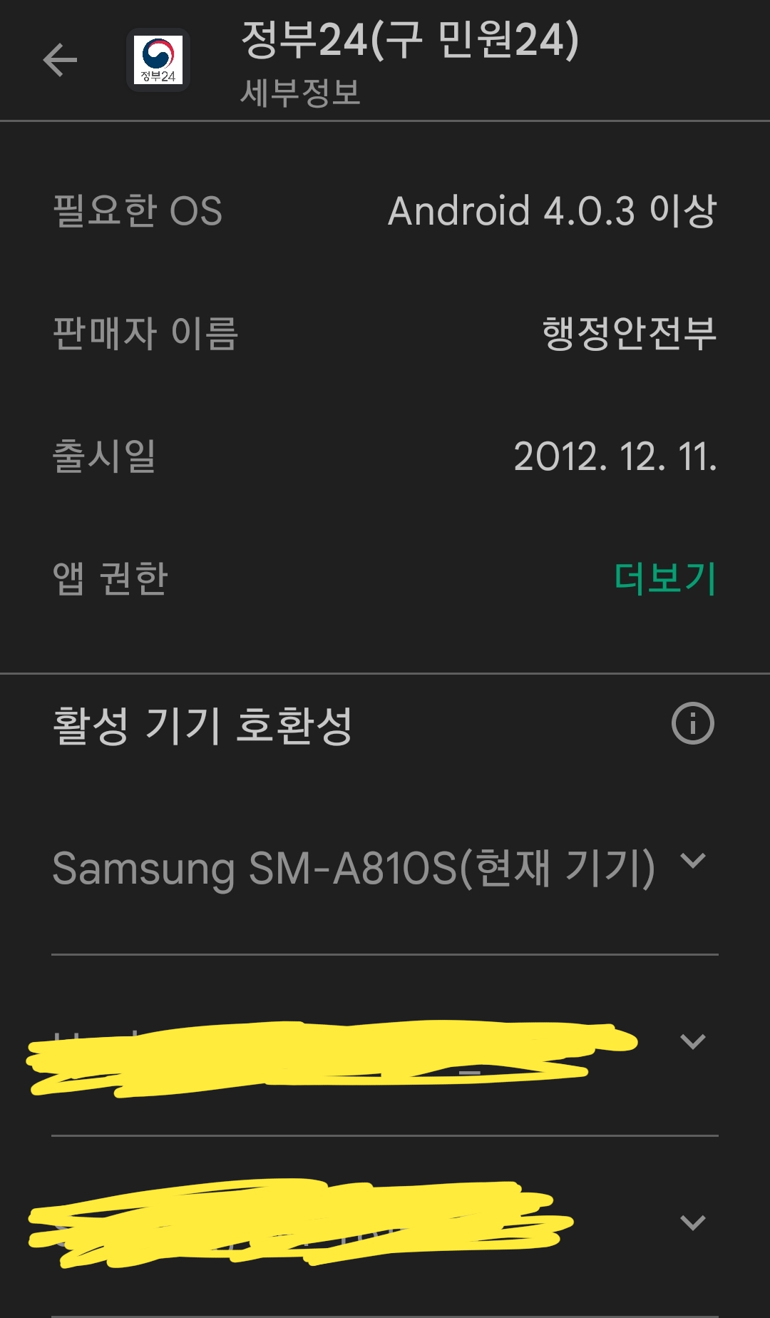 5.1 폰에서는 앱 자체가 검색되지 않으므로 저 호환성정보를 볼 수 없습니다.