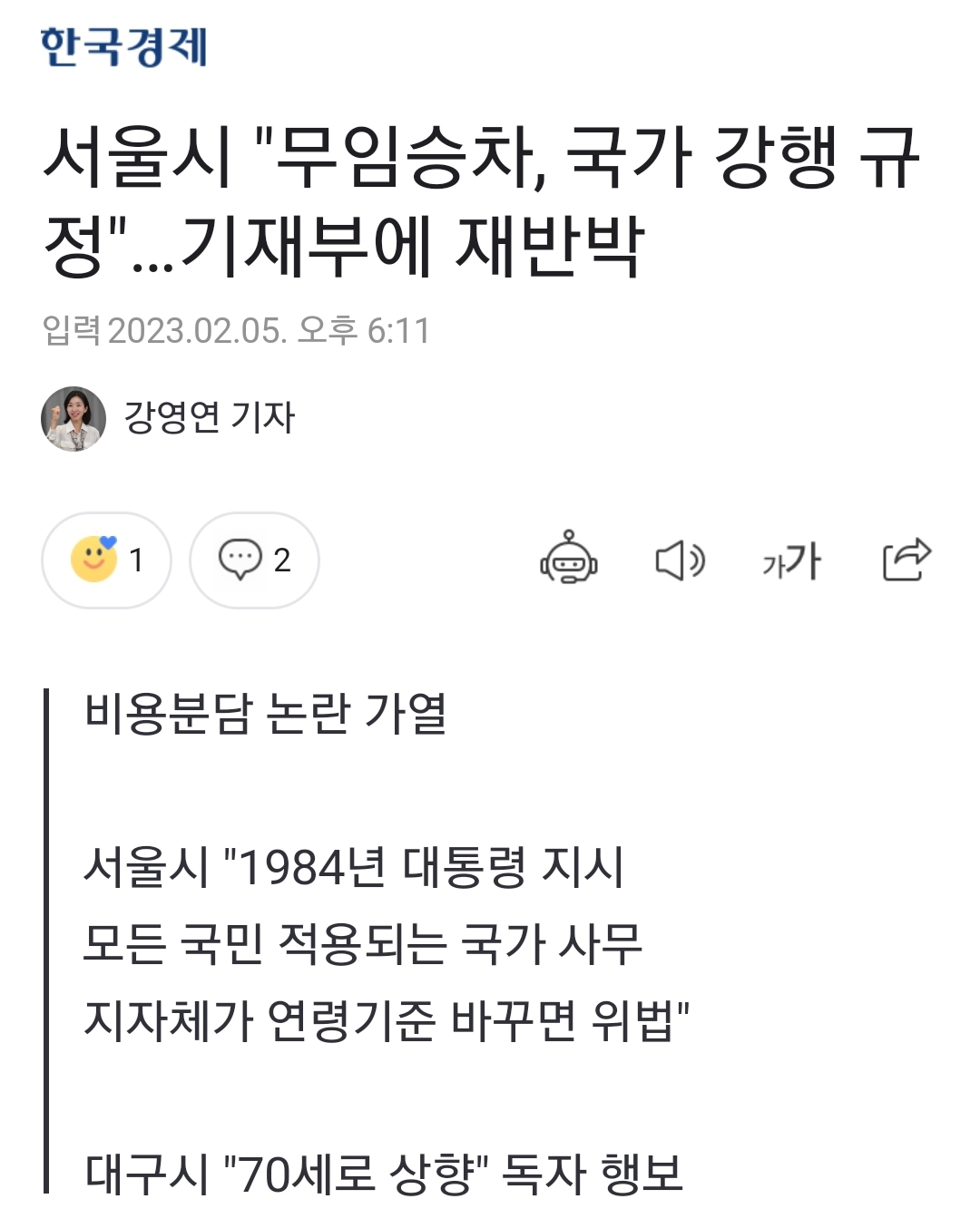 적자를 없애는 인상은 아니고 줄이는 인상. 명분은 법령으로 정한 무임승차제도로 인한 운임손실을 중앙정부가 채워주지 않는 것. 고령사회의 단면입니다.1